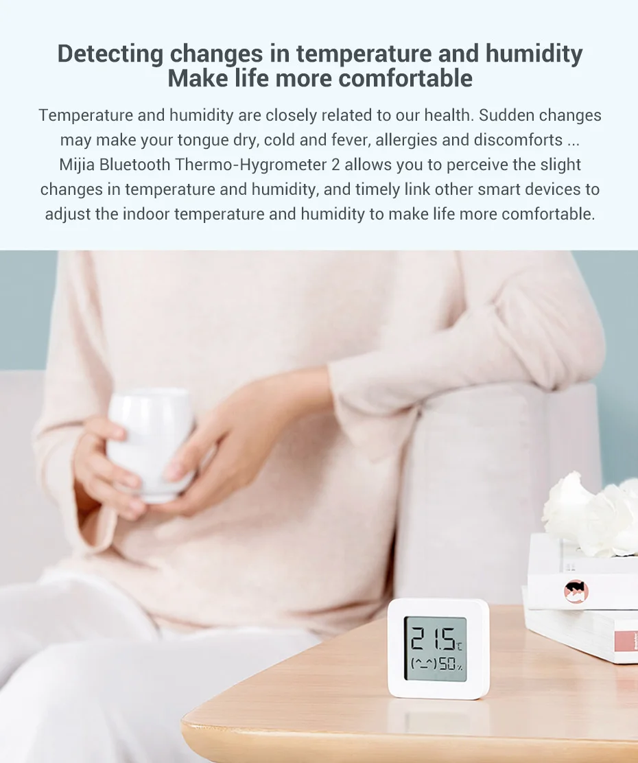 Xiaomi Mijia Bluetooth термометр 2 беспроводной умный электрический цифровой гигрометр Термометр комнатный датчик работа с MiHome APPXiaomi Mijia Bluetooth термометр 2 беспроводной умный EЛектрический цифровой гигрометр Термометр комнатный датчик работа с приложением MiHome