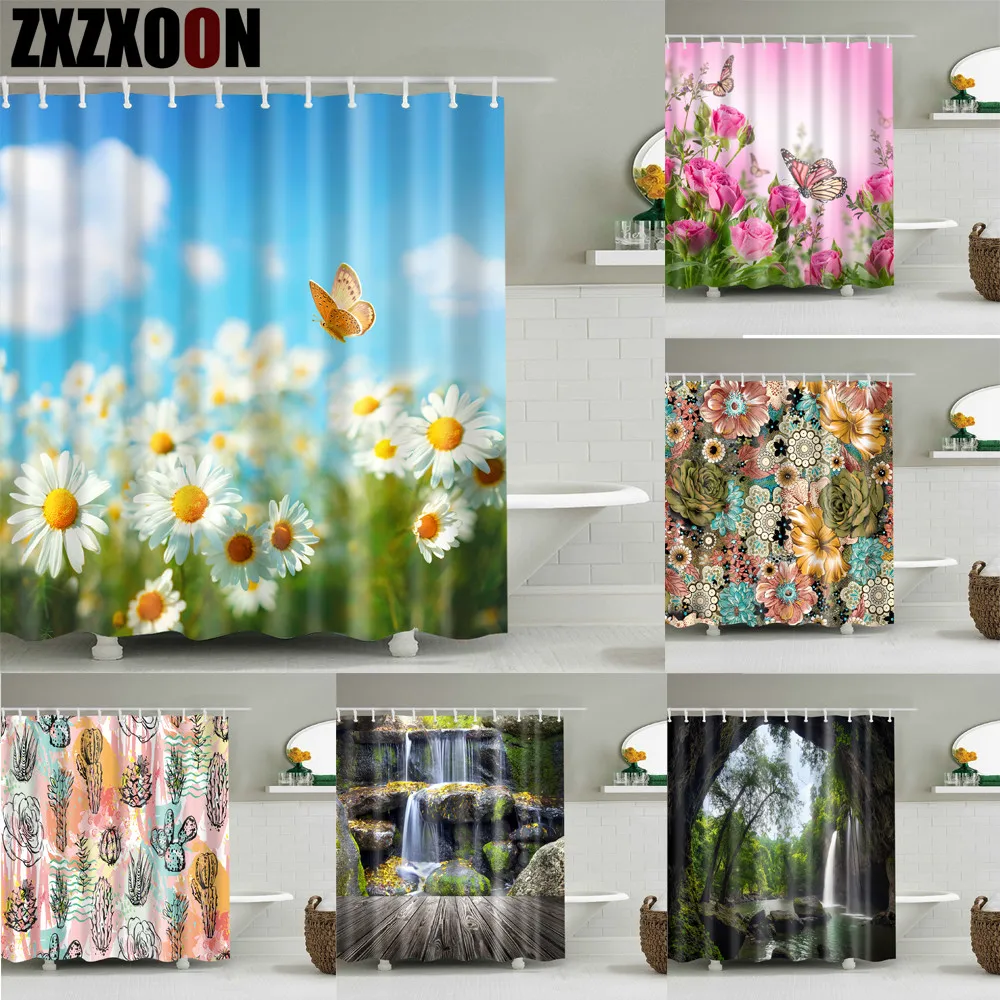 Полиэстеровые шторы для душа с цветочным принтом, водонепроницаемые...