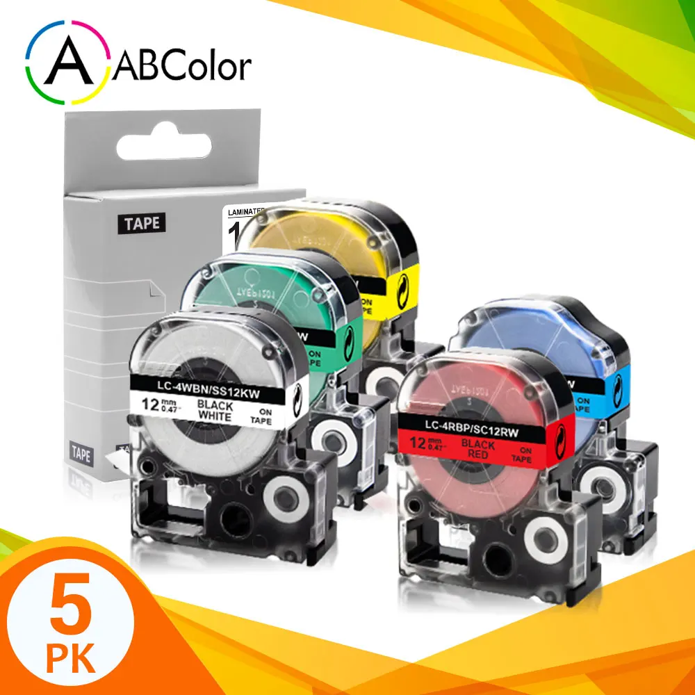 5PK 12 мм совместимая лента SS12KW SC12RW SC12YW SC12BW SC12GW лента для принтера ярлыков, лента для принтера, совместимая с Epson King Jim