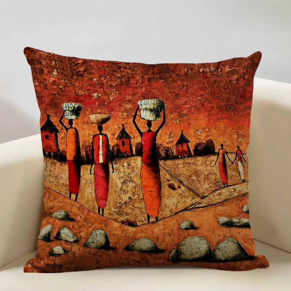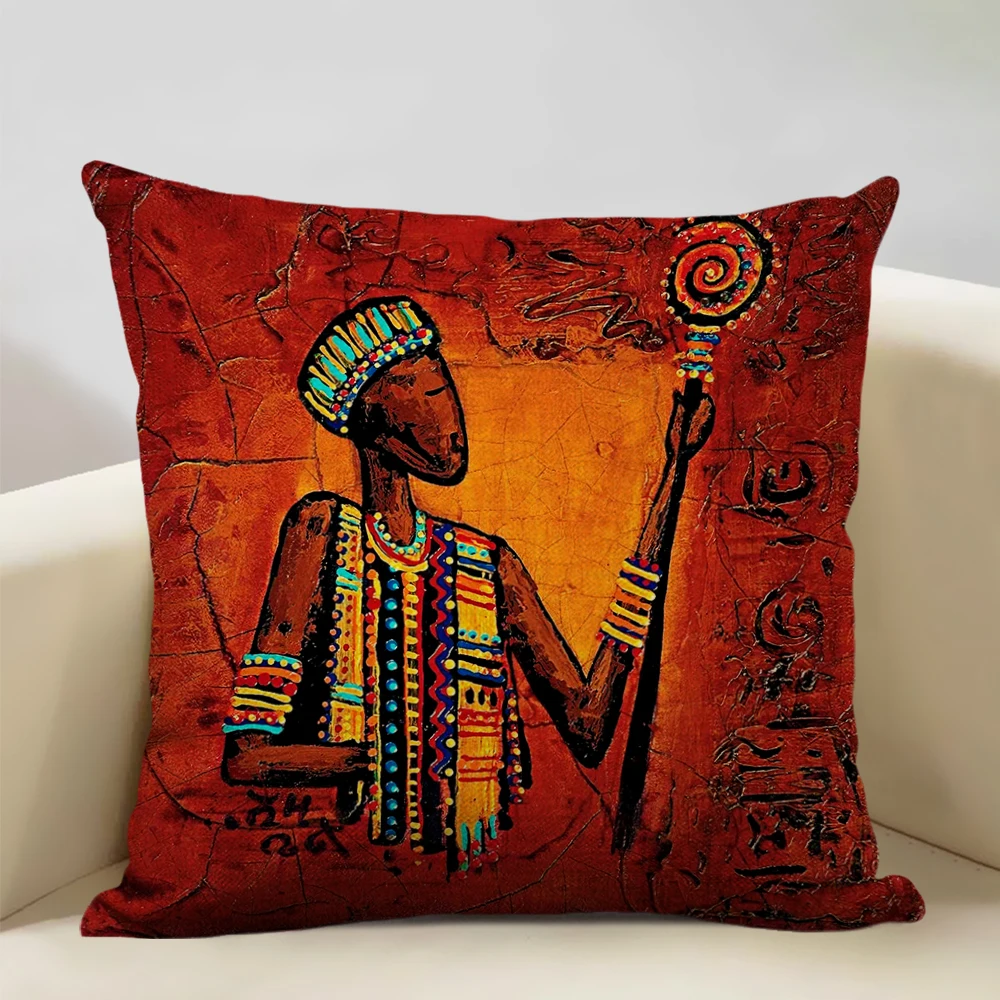 Наволочка для подушки в Африканском национальном стиле, наволочка для дивана для семьи, украшение для дивана, автомобиля, 45x45 см, льняная наволочка для подушки с дуплексным принтом