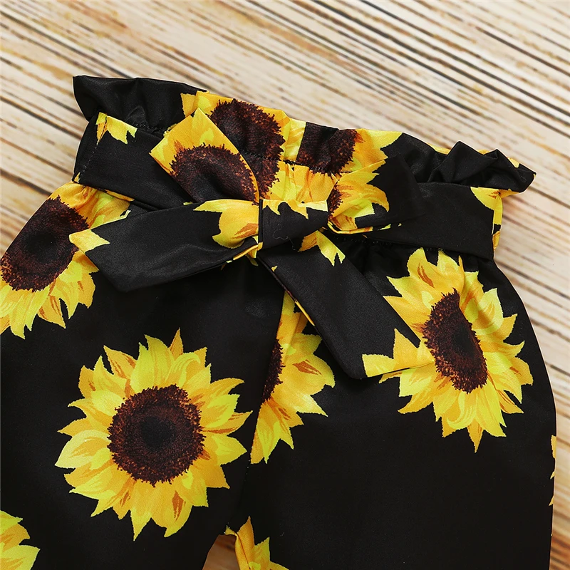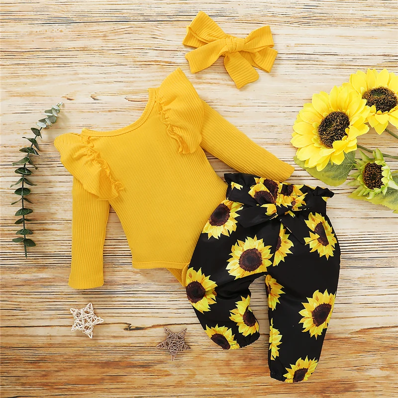 Боди с повязкой на голову, для маленьких мальчиков и девочек, с длинными рукавами, штанишки с принтом подсолнуха, комплект одежды из 3 предметов, 2021