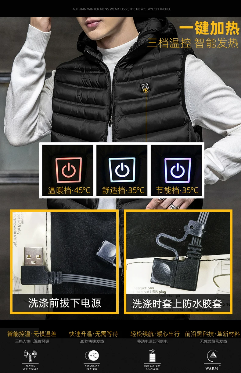 Жилет мужской уличный из хлопка, брендовая умная теплая куртка с подогревом крокодила, эластичная, Осень-зима