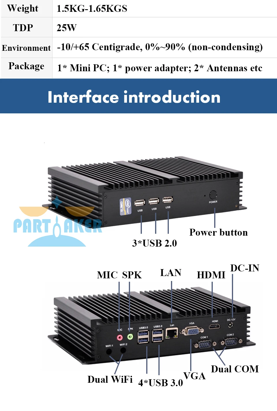 1. Безвентиляторный ПК (маленький компьютер) специально разработан для работы в пыльной или бесшумной среде, чтобы избежать аварийных сбоев.