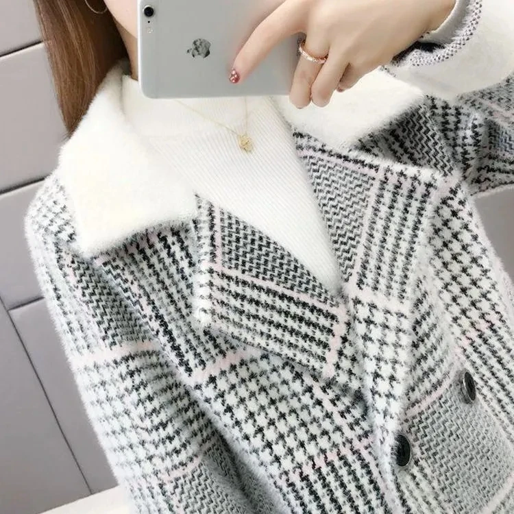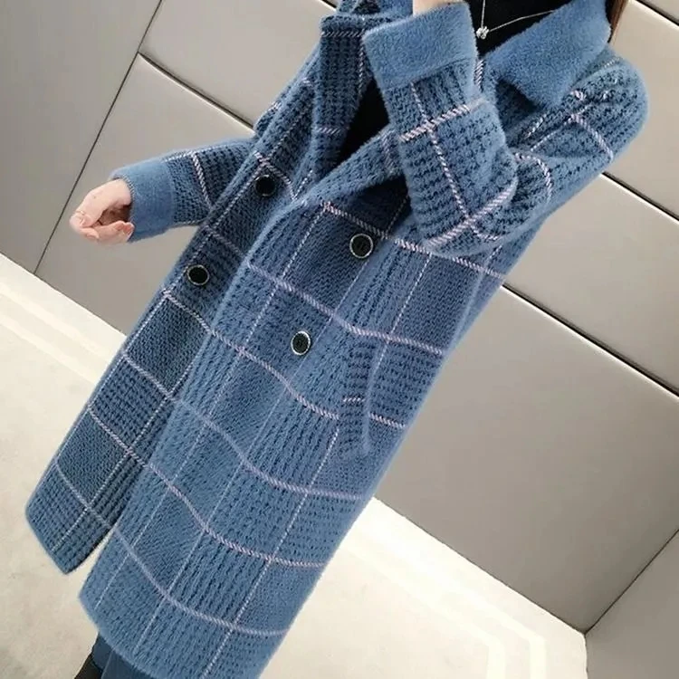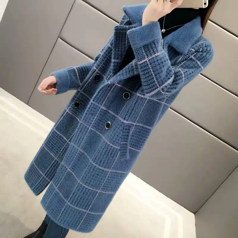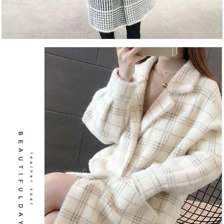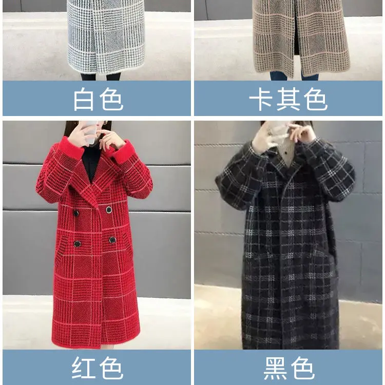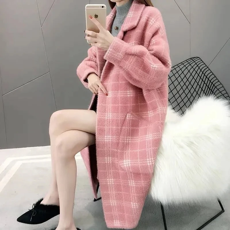 Пальто из искусственной норки и вельвета, женское, длинное шерстяное пальто, осенне-зимнее, толстое, теплое, в клетку