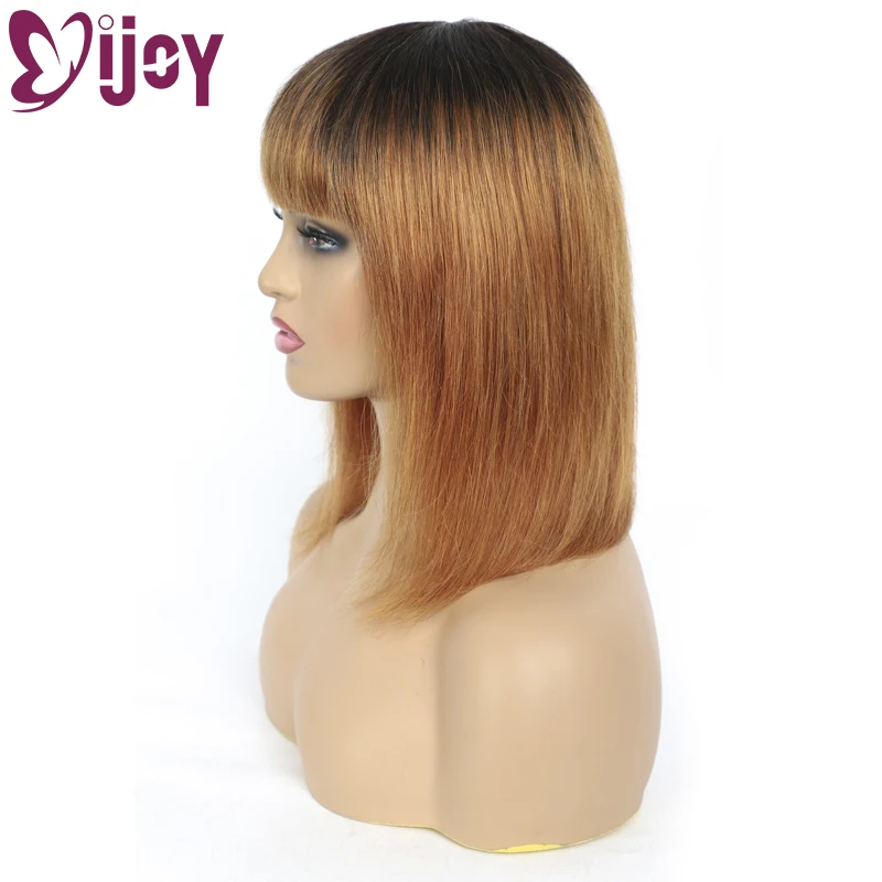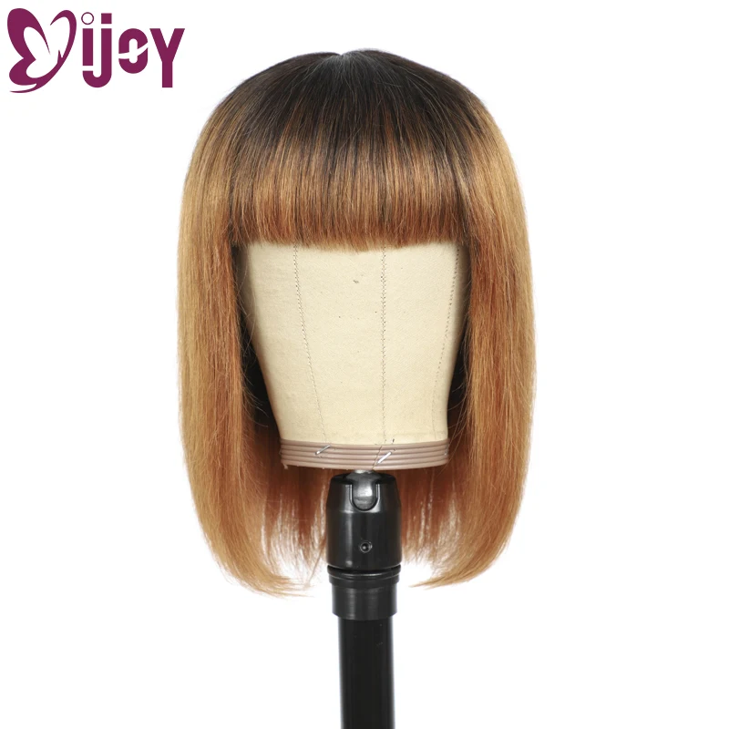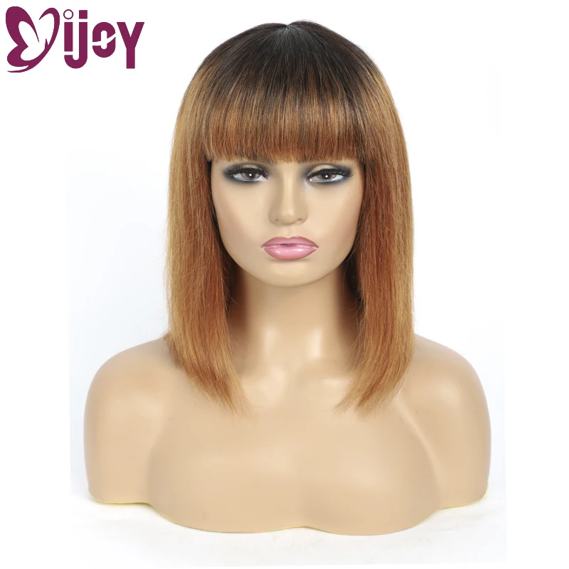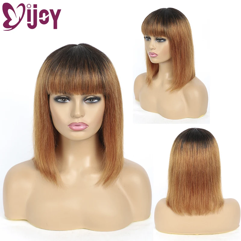 Парик из человеческих волос короткий Боб, бразильские натуральные человеческие хиар парики с челкой, волосы не Реми, парик полностью машинной работы для черных женщин IJOY