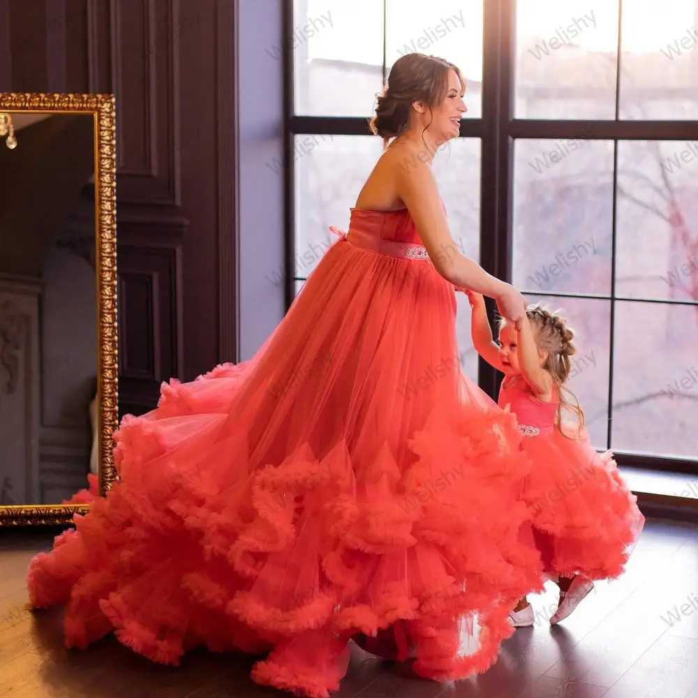 2020 длинное Тюлевое платье с оборками для мамы и пышная ярусная юб...