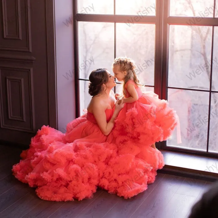 Шикарное фатиновое платье для матери и дочери, длинное платье, женское Тюлевое платье для фотосессии, платье для беременных