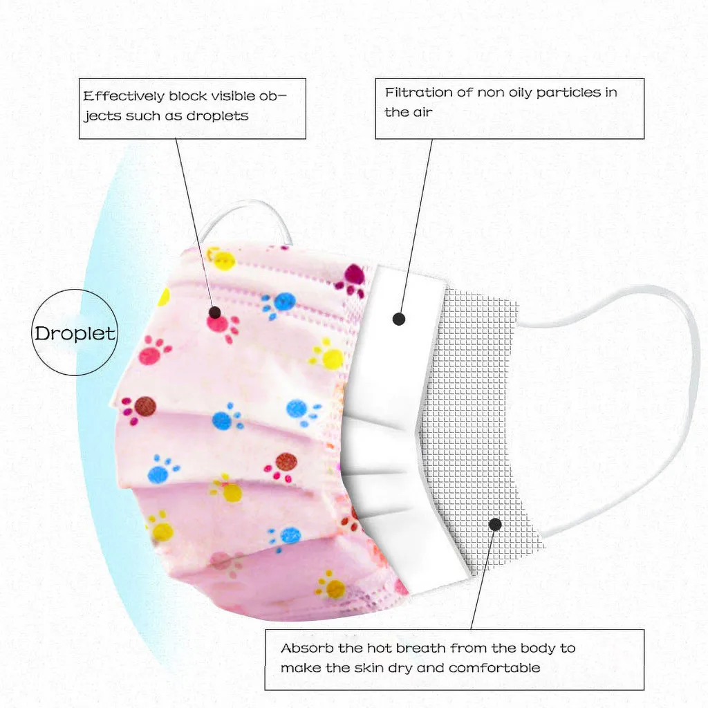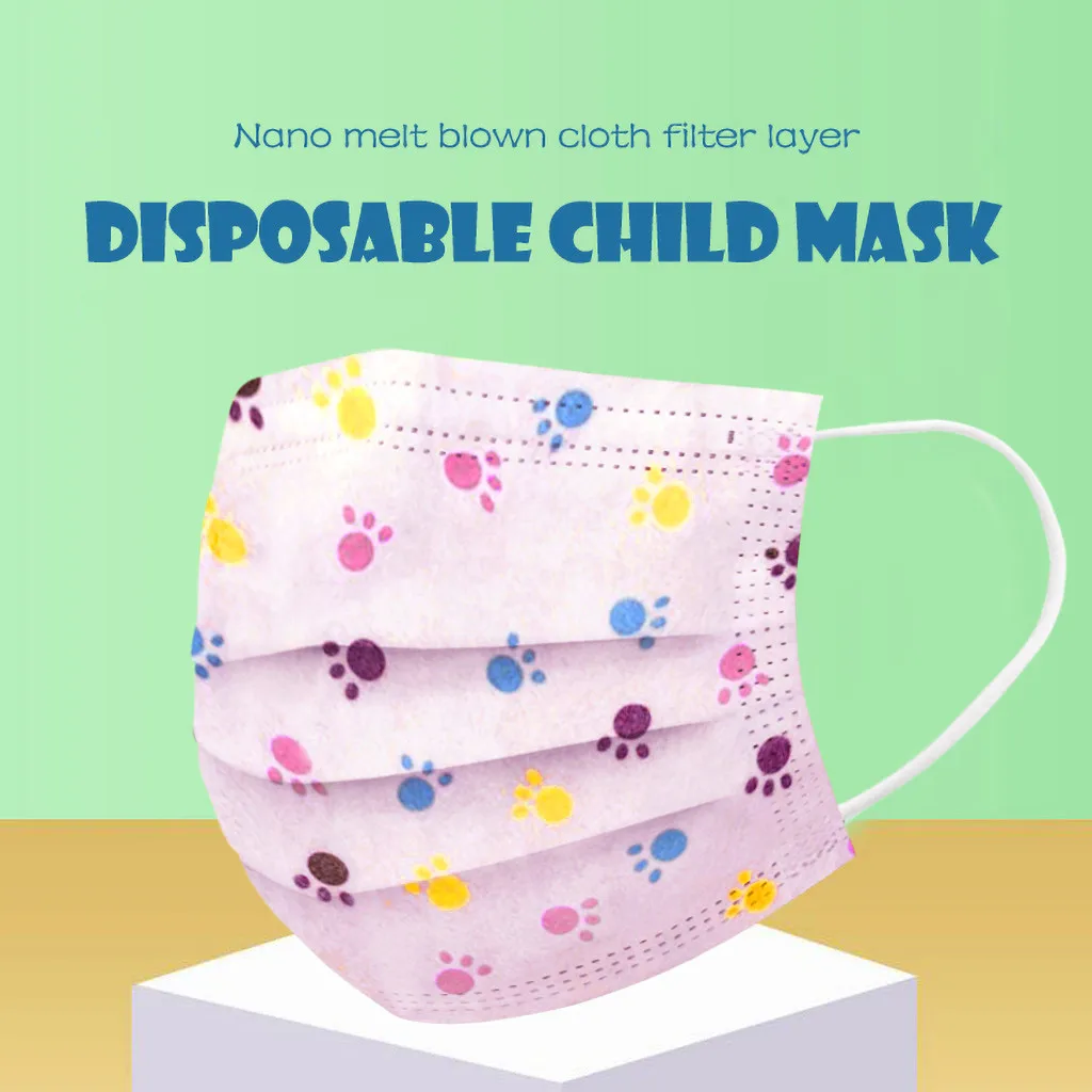 50 шт., одноразовая маска с мультяшным принтом для детей, 3 слоя, детский фильтр, гигиеническая плотная маска для лица, для ушей, быстрая доставка