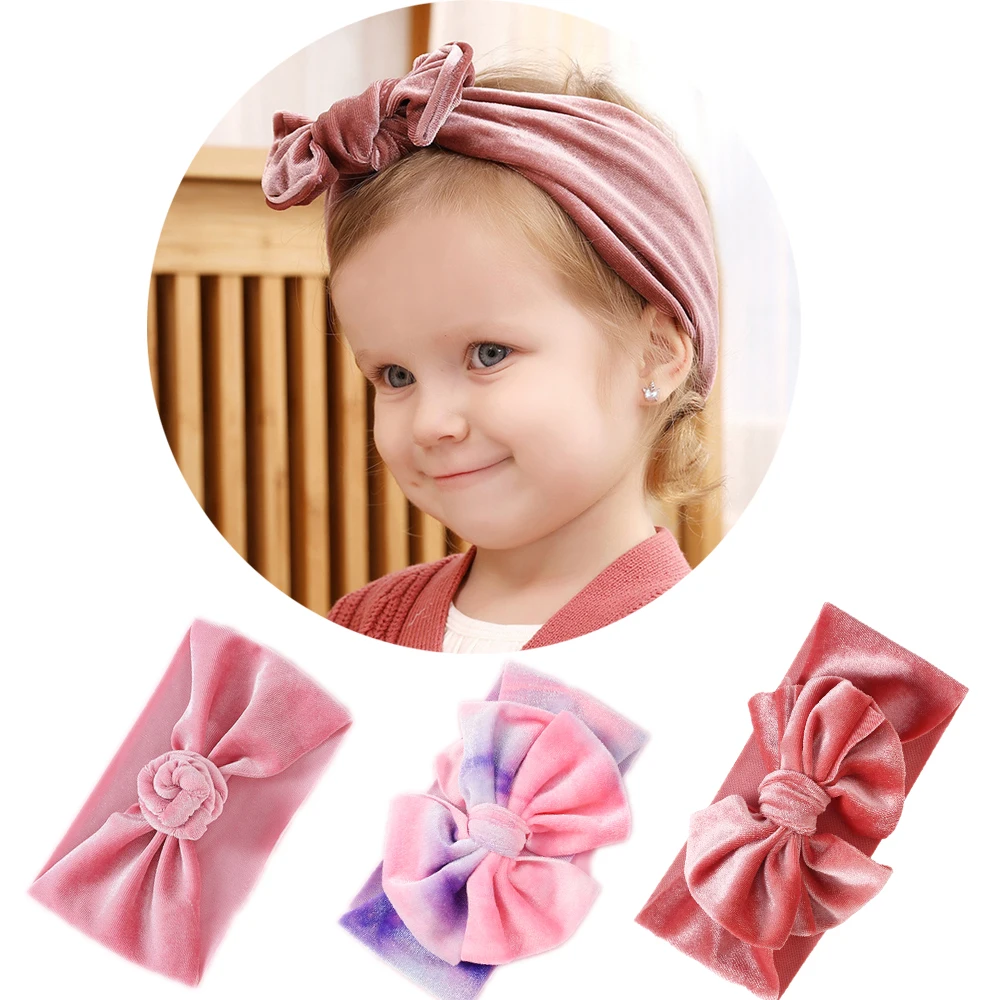 Детские аксессуары, бархатная повязка для волос с бантиками, Зимняя повязка для волос для девочек, галстук-бабочка для детей, аксессуары для волос для детей