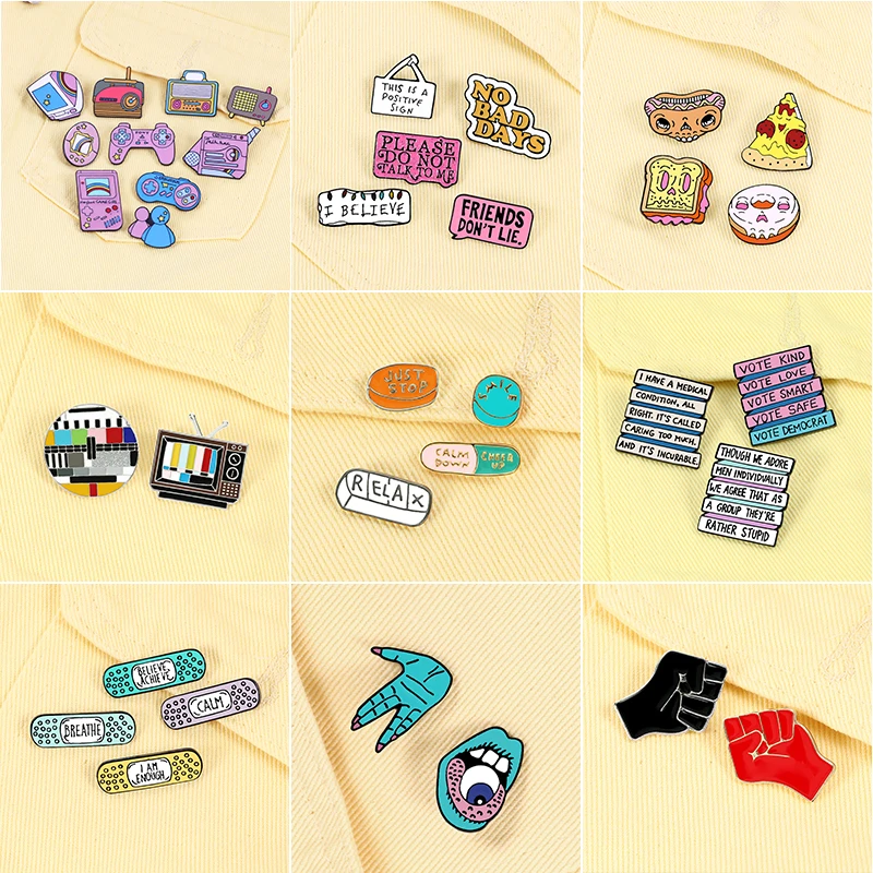 Значки в стиле панк, 2-7 шт.компл., с милыми эмалированными героями мультфильмов, игровой автомат, пищевой кулак, ТВ Броши с буквами
