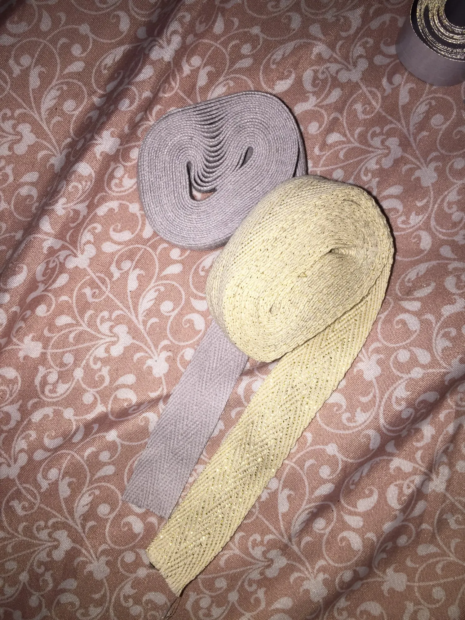 В намотке приблизительно 2, 7 м. Лента мягкая , переплетение довольно рыхлое, цвета соответствуют.В бежевой ленте вплетены нити люрекса, очень симпатично выглядит.В Нижегородскую область доставлено в течение месяца. Рекомендую.