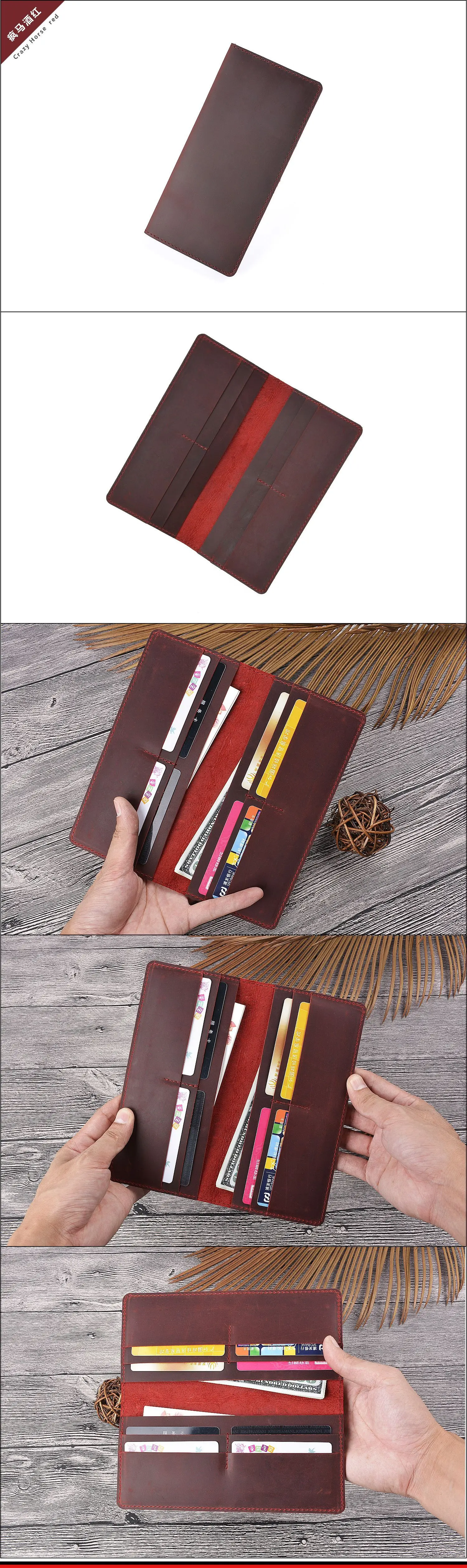 GROJITOO, хит продаж, ручная работа, Crazy Horse, кожа, первый слой, Воловья кожа, Мужской Длинный кошелек, женский клатч, кошелек для карт, отделение для монет