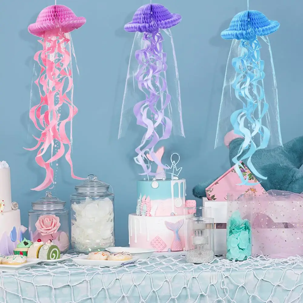 Украшение для океанской вечеринки, прозрачный пузырьковый подвесные гирлянды с Медузой, бумажный фонарь, соты, Русалка под морем, товары для дня рождения