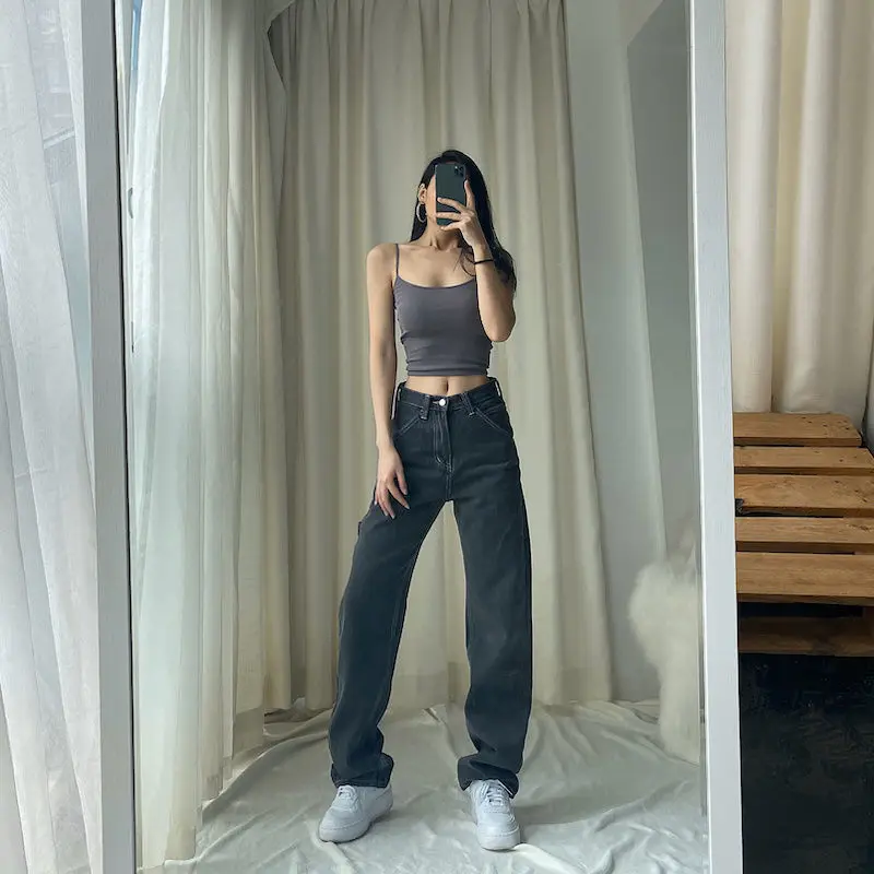 2021 женские джинсы мешковатые дымчатые Серые Синие элегантные широ...