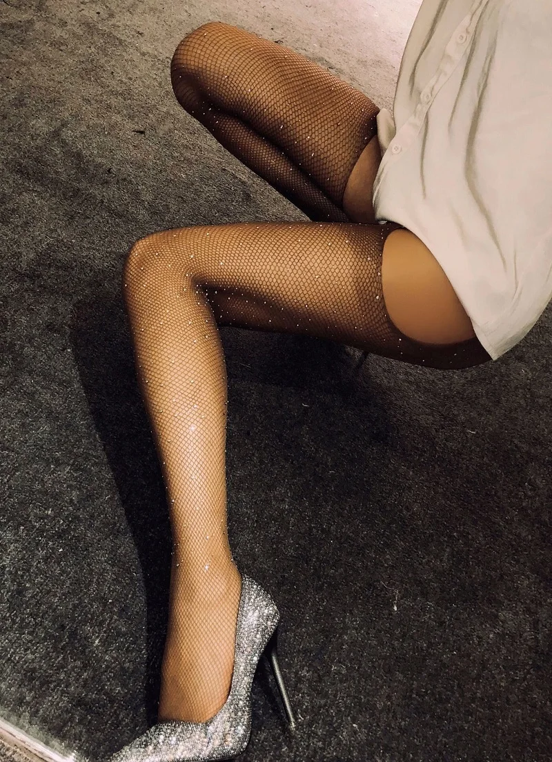 Черные чулки в сеточку, женское сексуальное нижнее белье, колготки, блестящие нейлоновые чулки со стразами, Экзотическая одежда, Чулочные изделия