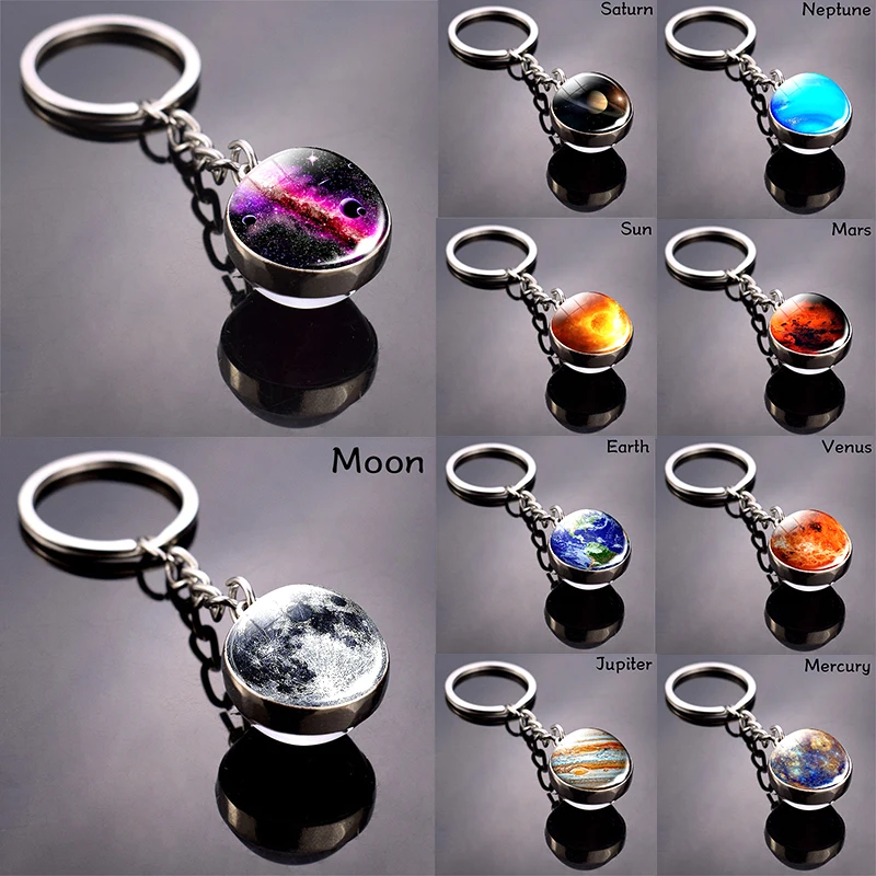Брелок для ключей, металлический, двухсторонний, со стеклянным шариком
