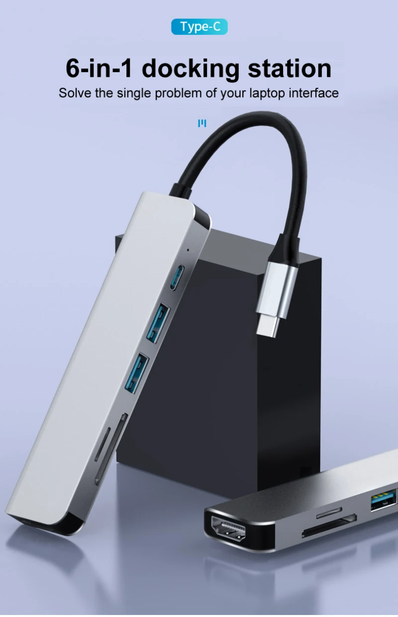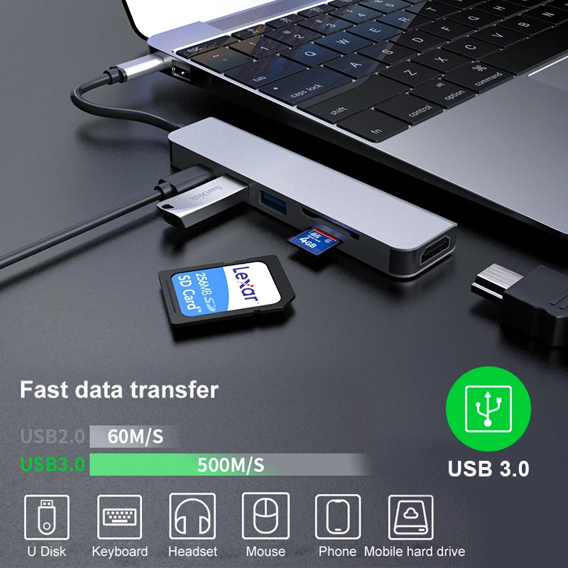 Адаптер USB Type-C 6 в 1, Двойная док-станция USB Type-C для MacBook Pro с 4K HDMI, совместимый с USB C USB3.1, устройство для чтения SDMicroSD карт