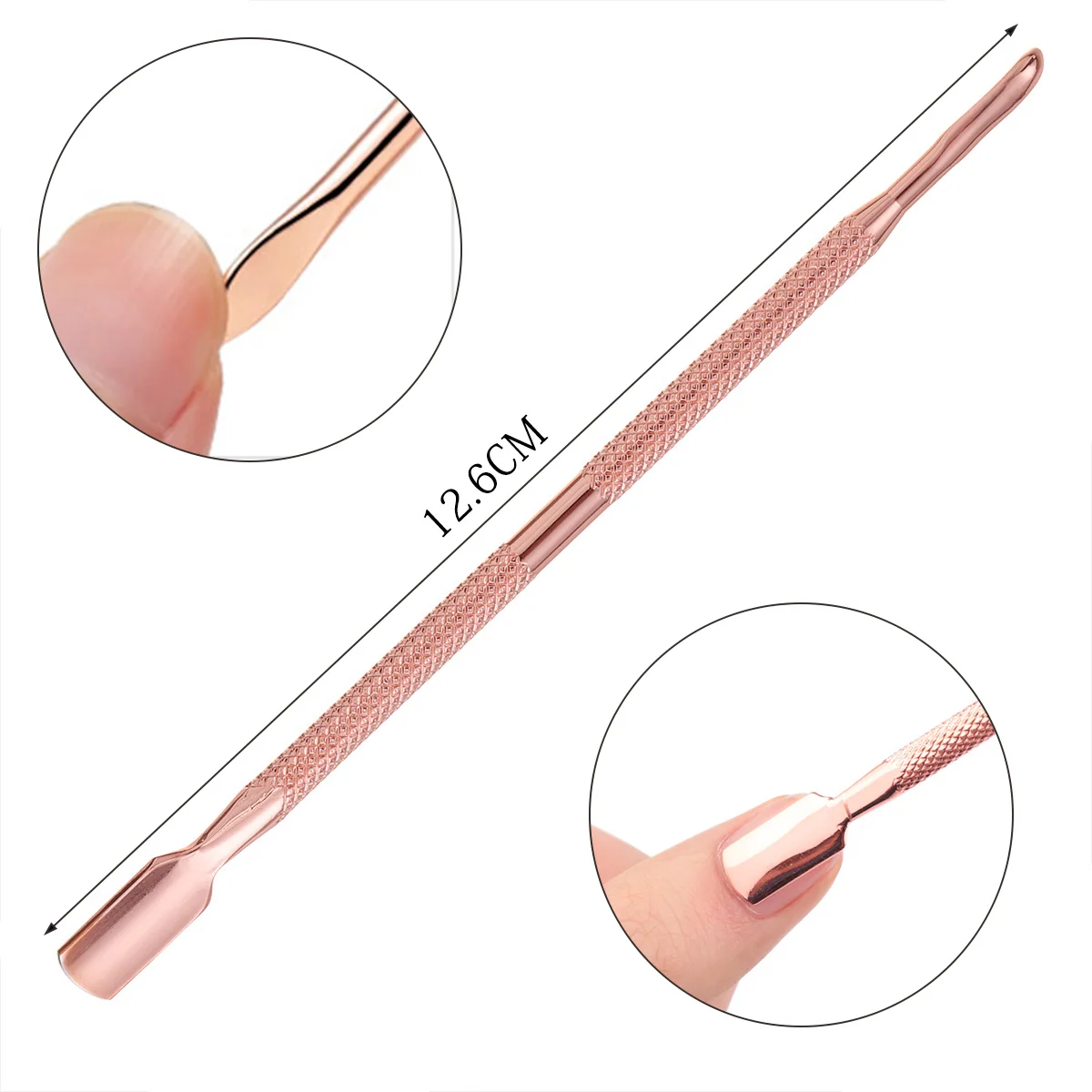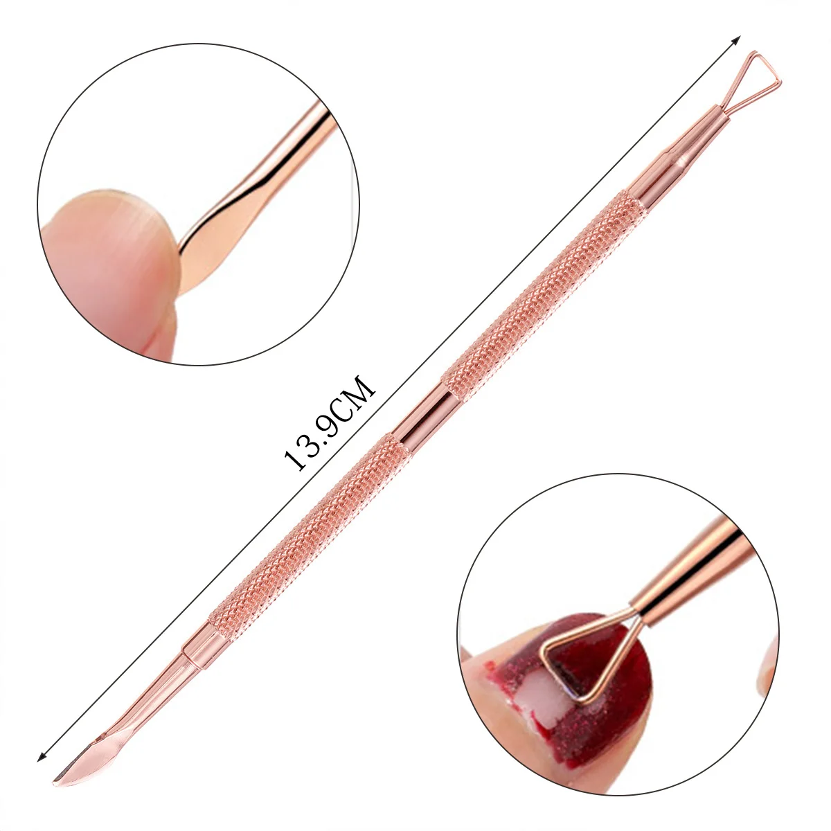 Monja 4 стиля, розовое золото, двойной конец, нержавеющая сталь, для дизайна ногтей, кутикулы, толкатель, для удаления омертвевшей кожи, пилки, инструмент для ухода за маникюром