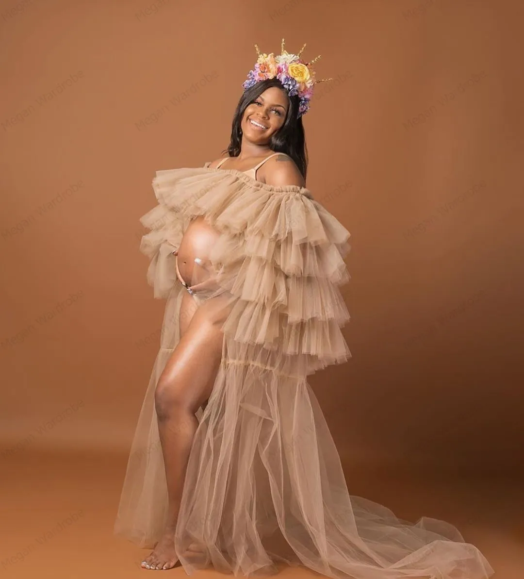 Высококачественный красивый тюлевый халат для беременных для фотосъ...