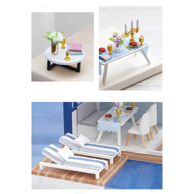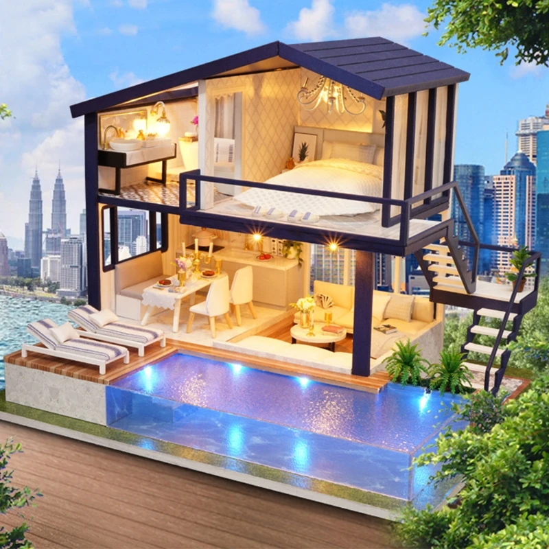 Миниатюрный Кукольный домик с мебелью, комплект для деревянного кукольного домика сделай сам с пыленепроницаемостью, набор для сборки крошечного домика 1:25 (бассейн, квартира WXTD