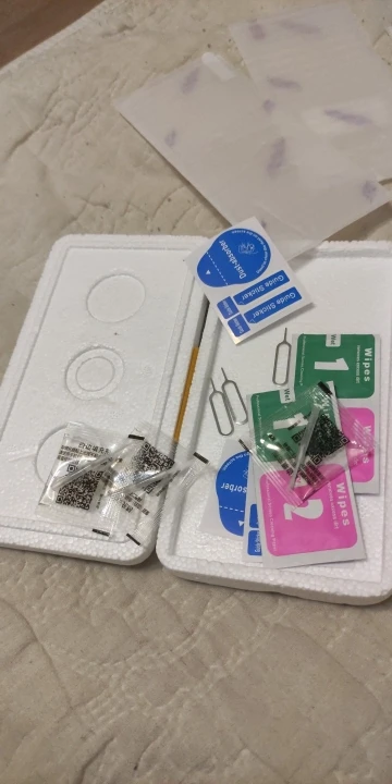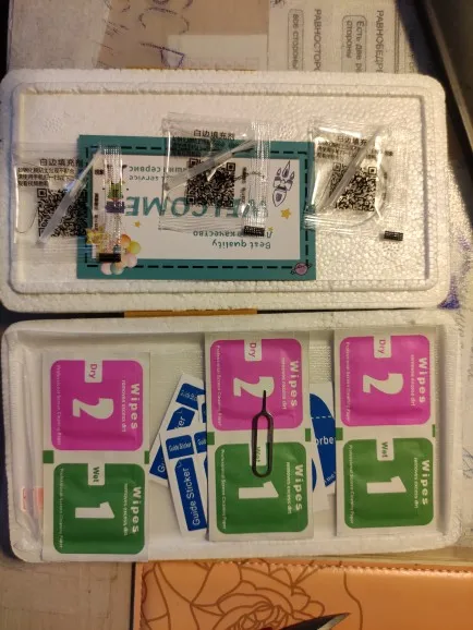 описанию соответствует, качество хорошее, + подарок в виде 3 скрепок для лотка сим карты, мелочь а приятно, положили все нужные салфетки + кисточки и какой-то раствор видимо клей, все х3, заказом доволен всем советую.