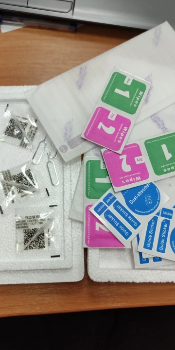 упаковано оч. хорошо, в комплекте по 2 салфетки для каждого стекла и набор стикеров, которые помогают приклеить стекло. покупалось на POCO x3, но еще не устанавливалось