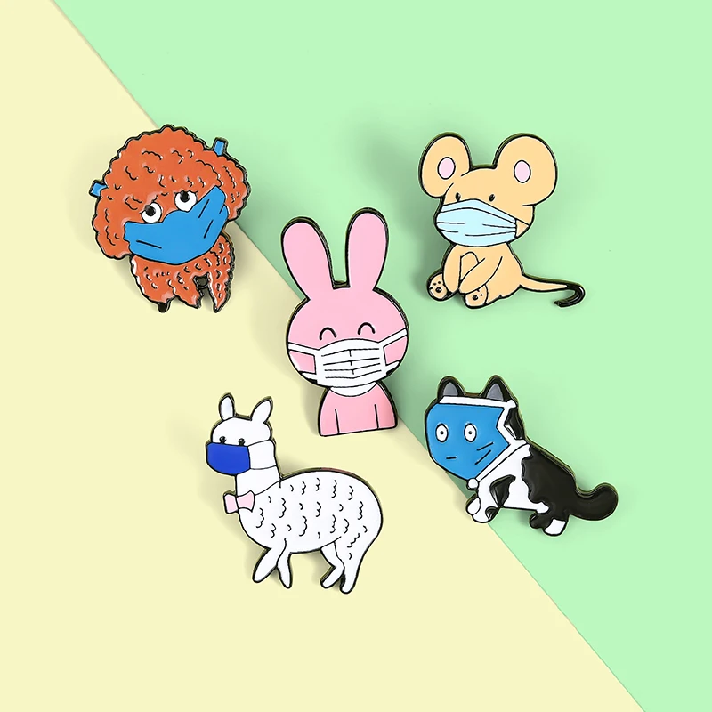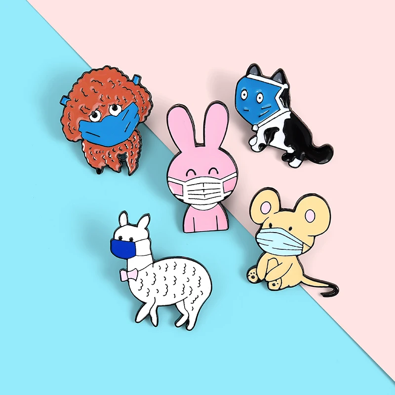Броши с эмалью в виде маски, кролика, мыши, собаки, кошки, альпаки