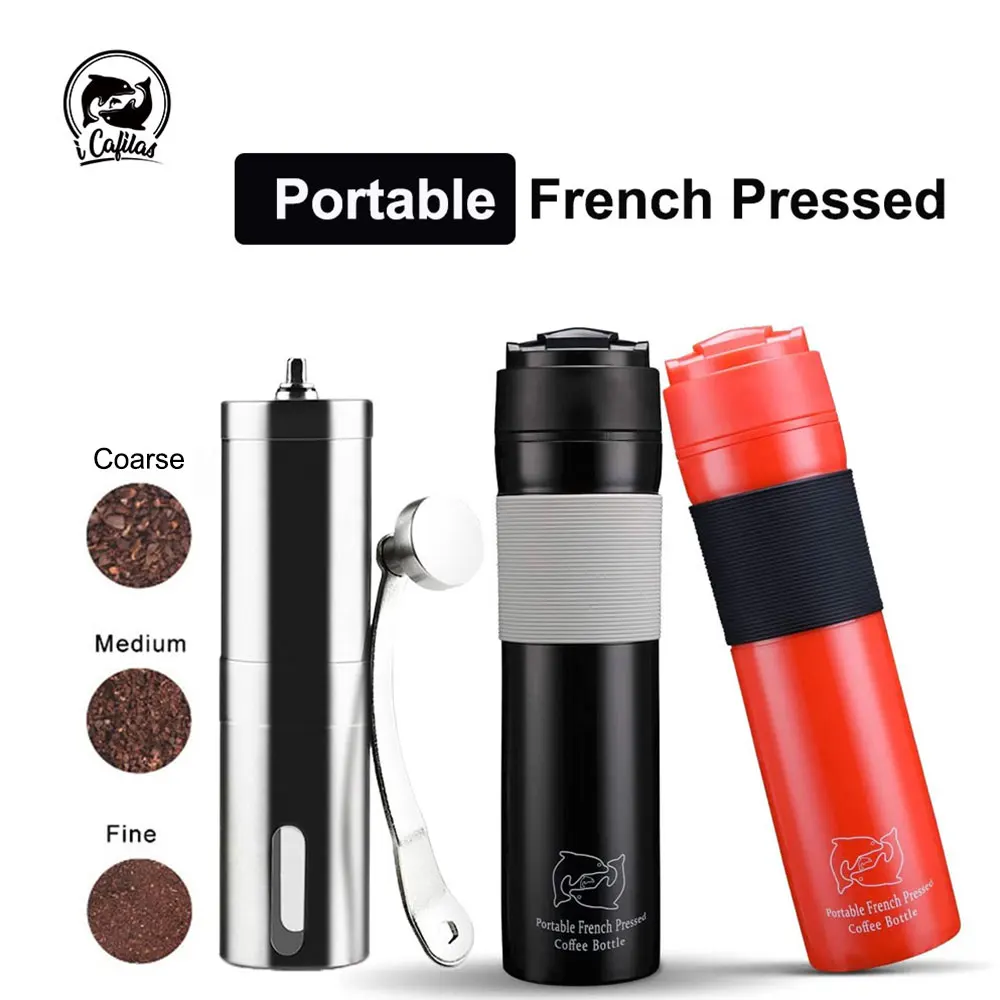 ICafilas 350 мл портативный французский пресс ed кофе чай бутылка для путешествий и кемпинга Ручной пресс для машины кофемолка
