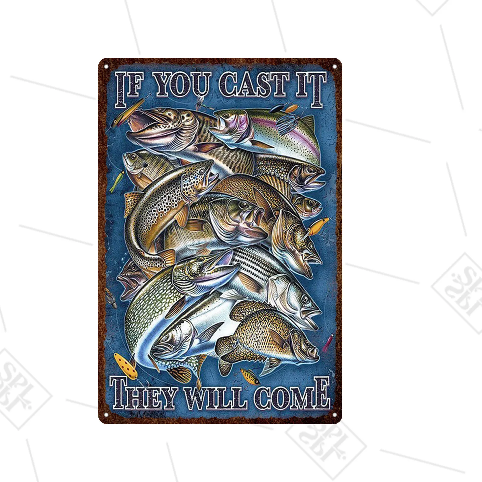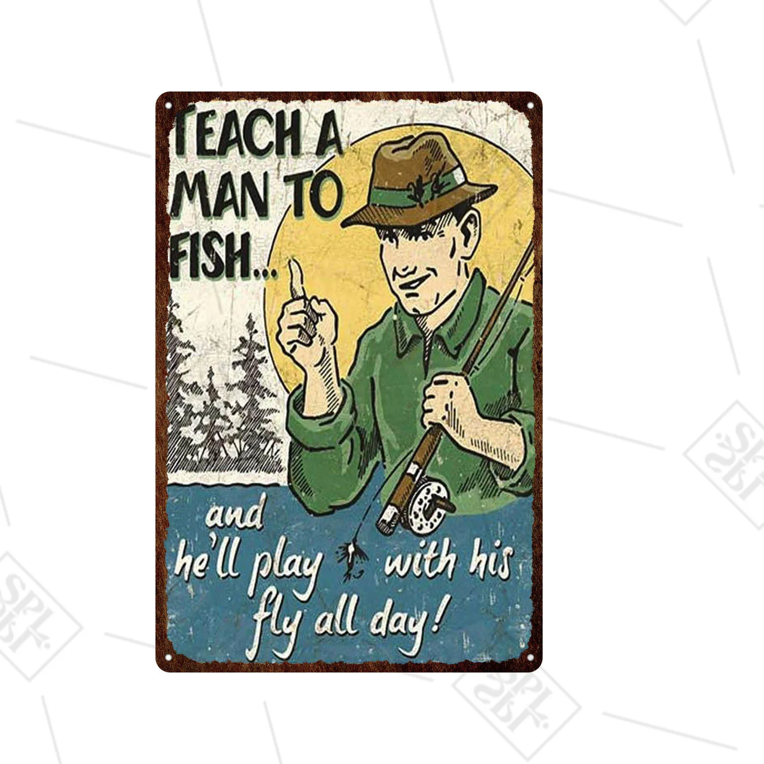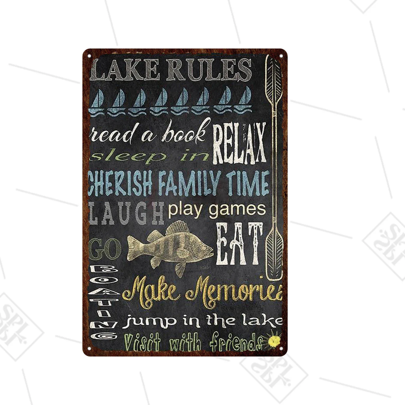 Жестяной знак Правила магазина, металлические пластины для рыбалки,...