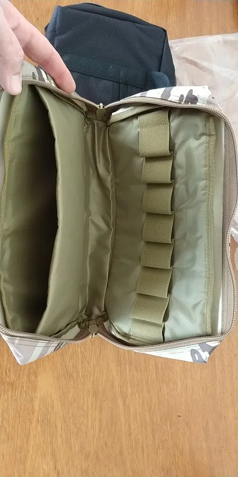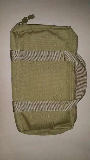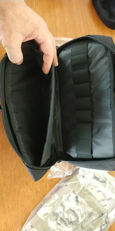 Довольно крупная, довольно мягкая сумка. Я брал для ножей. Войдет 9 складней под резинки и пара-тройка коротких фиксов в ножнах.