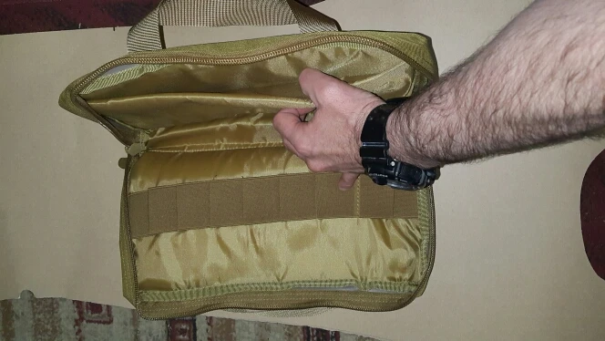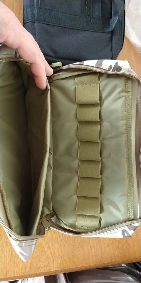 Доставка за 21 день МистЭкспресом. Качество отличное: крупная молния, плавно и легко передвигаются бегунки на ней, швы также хорошие. Кармашек для документов изнутри прорезиненный. Внутри можно спокойно разместить две железяки (отсек с двух сторон усилен поролоном), упаковки для патронов (пару сотен точно лягут), есть 9 кармашков для магазинов. Одним словом компактно и толково. Рекомендую товар и продавца.