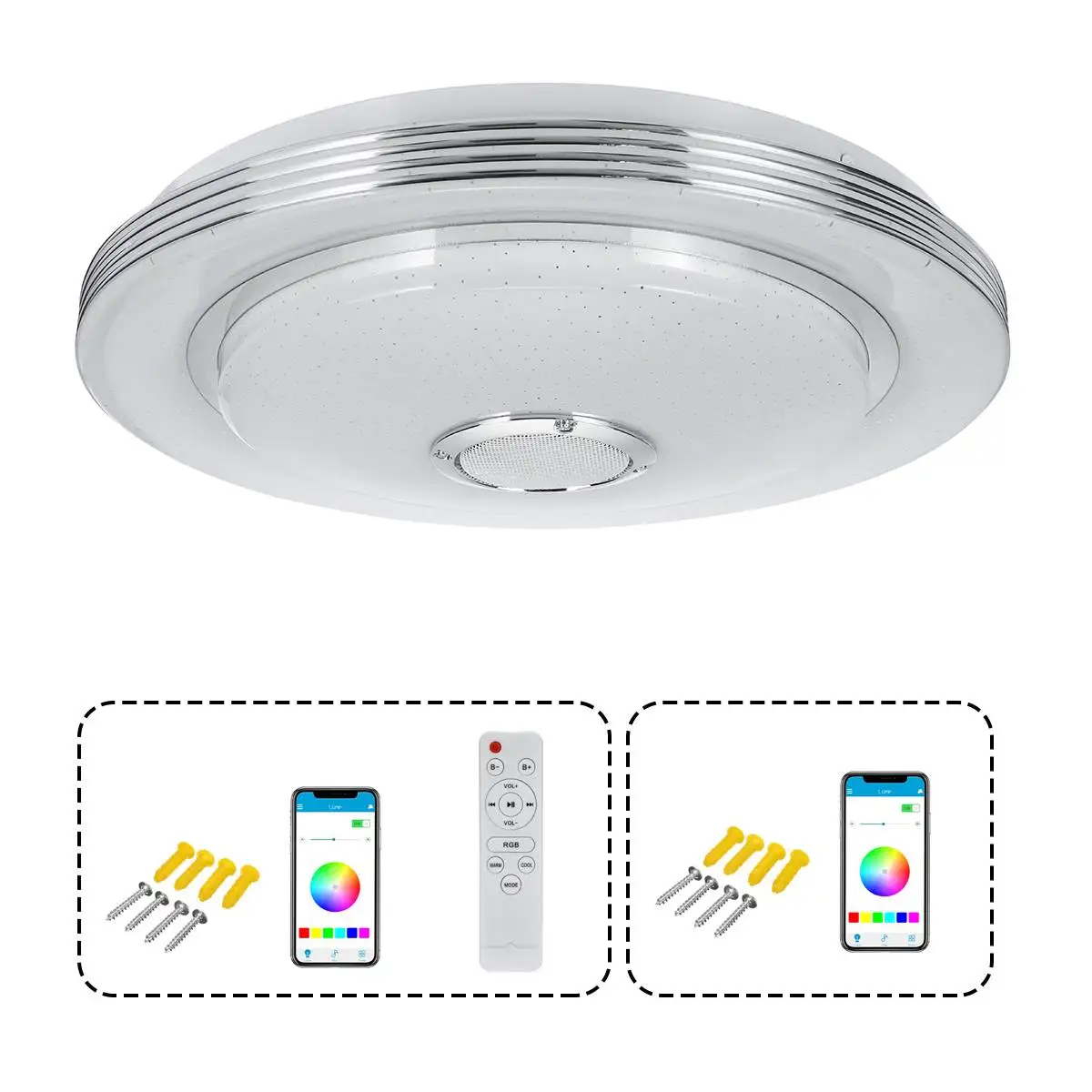 Особенность:Он оснащен мощным динамиком, который воспроизводит музыку через соединение bluetooth со смартфона. С помощью специально разработанного приложения цветом светильник яркостью лампы можно управлять со смартфона.Мощные светодиоды RGBW могут воспроизводить все спектральные цвета, а также излучать белый светильник с разной интенсивностью и цветовой температурой.По сравнению с обычными светильниками, светодиодные прожекторы потребляют минимальное количество электроэнергии и даже ниже по энергопотреблению, чем энергосберегающие лампы.【Энергосбережение 】-наш потолочный светильник для замены люминесцентной трубки мощностью 100 Вт экономит 65% на вашем электрическом счете. Снижение частоты повторной лампы с номинальным сроком службы 50000 часов【Защита глаз дизайн 】-без стробоскопии, без шума. Равномерно без бликов, не только защищает ваши глаза от резкого и бликового света, но и создает для вас теплую и комфортную семейную обстановку【Многофункциональное приложение 】-особенно настройка времени, установите время выключения, музыка будет сопровождать вас, чтобы уснуть, или Установите будильник, чтобы начать прекрасный день с музыкой.