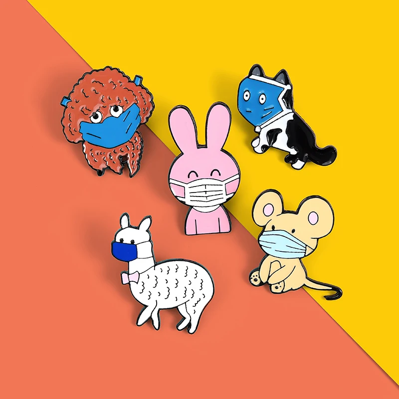 Мультфильм кролик мышь собака Альпака кошка носить брошь с маской м...