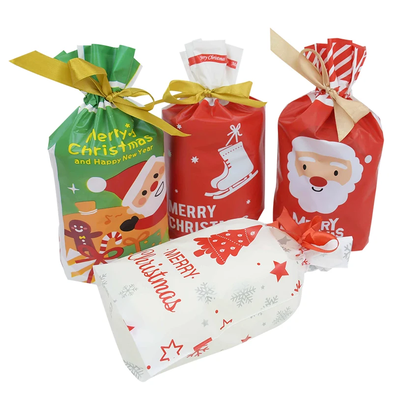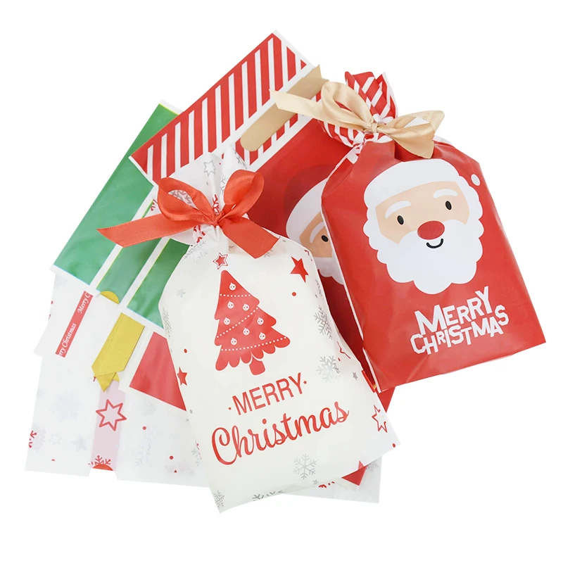 5 шт. 23 см пластиковые пакеты на шнурке, Рождественский Подарочный пакет, новый год 2021, конфеты, печенье, упаковочные принадлежности