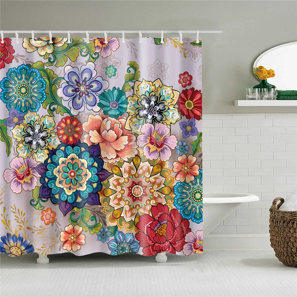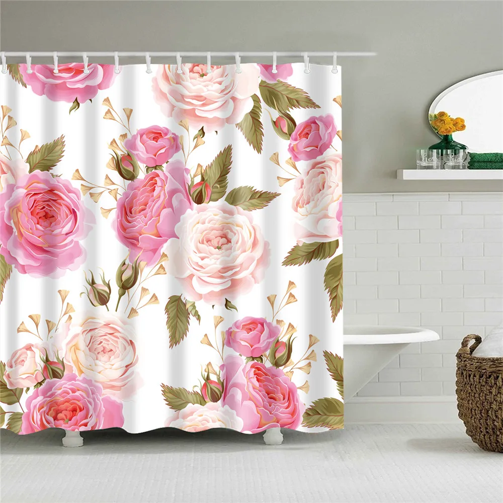 Полиэстеровые шторы для душа с цветочным принтом, водонепроницаемые...