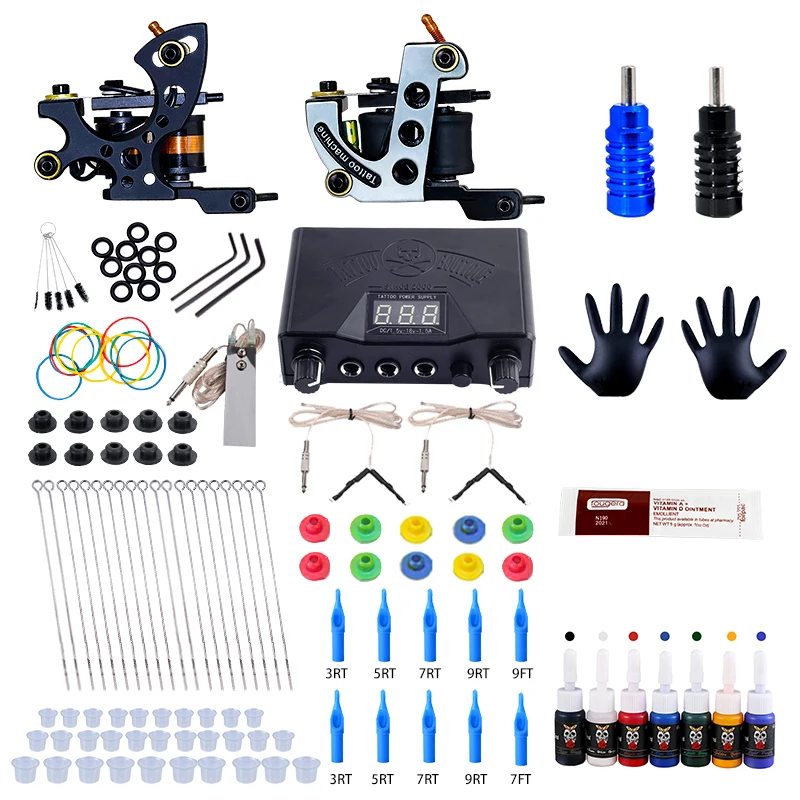 Полный набор для тату-машинки, набор для тату-машинки, блок питания, иглы, профессиональный набор для тату-машинки для начинающих