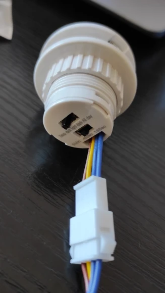 Дошло быстро, установил все работает. вообщем прикольно. Коричневый на фазу. синий на ноль это два длинных, остальные два на нагрузку у меня лампочка.