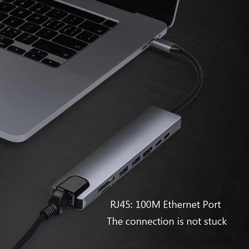 USB-C 8 в 1 Type-C USB 3,0 usb-хаб 4K HD ноутбук PD зарядкаSDTF кардридерRJ45 адаптер для MacBook Pro док-станция