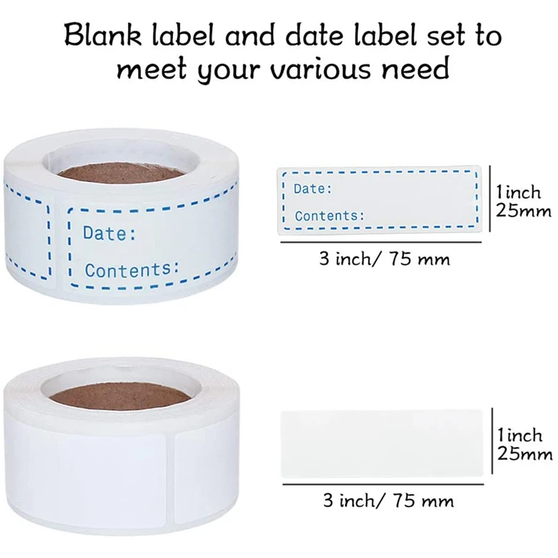 Универсальные этикетки: Используйте прямоугольные наклейки, этикетки, такие как контейнер для приготовления еды, пакеты с морозильной камерой, остатки пищевых контейнеров, выпечка, лекарства, дорожная косметика и т. д., подходят для кухни, домашней пекарни, мясники, офисные
