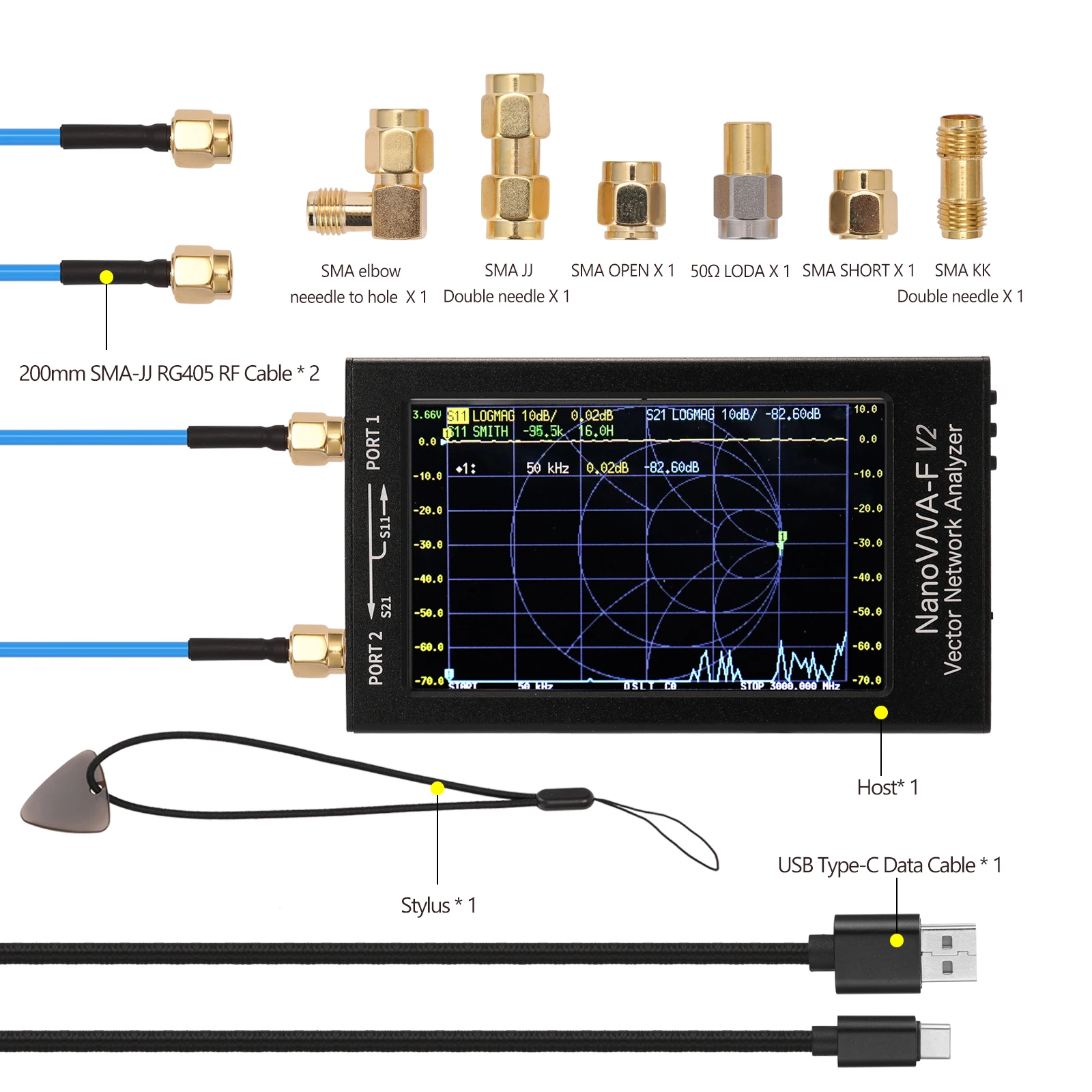 NanoVNA-F V2 портативный векторный сетевой анализатор-это новый продукт, разработанный на базе NanoVNA-F. Он использует 4,3-дюймовый IPS ЖК-дисплей дисплея и алюминиевый сплав чехол. Он оснащен литиевой батареей большой емкости 5000 мАч в качестве стандарта. Поддержка работы сенсорного экрана и боковой кнопки, поддержка китайского и английского интерфейса. Дизайн этого продукта основан на edy555's NanoVNA и OwOcomm's S-A-A V2, а глубокая оптимизация программного обеспечения производится на основе предыдущего продукта NanoVNA-F. Рабочий интерфейс совместим с NanoVNA-F, диапазон измерений увеличен до 3 ГГц, а динамический диапазон больше. Измерение более точное, и операция более удобна.Особенности:4,3-дюймовый IPS ЖК-дисплей дисплей, разрешение 800*480, ультра-широкий обзор угол, при длительном использовании не режет глаза.Чехол из алюминиевого сплава, прочный и прочный, эффективно защищает от электромагнитных помех для обеспечения точности измерений.Радиочастотный интерфейс SMA, который удобен для подключения различных протестированных деталей.Полноразмерный дизайн экрана, с 3 боковыми кнопками одновременно, гибкой и удобной в эксплуатации.Поддержка китайского и английского интерфейса.Оптимизированный дизайн пользовательского интерфейса, удобный для пользователей для выполнения операций измерения.Поддержка регулировки яркости экрана.Прошивка может быть обновлена через виртуальный u-диск, программист не нужен, а Прошивка может быть обновлена через прилагаемый usb-кабель для передачи данных type-c.Стандартные Калибровочные детали хорошего качества и RG405 фазостабильный кабель для обеспечения точности калибровки.Разработан с интерфейсом выхода USB, который может поддерживать выходную мощность 5 В/1 А.С помощью 2А высокой токовой подзарядки IC время подзарядки короче.Поддерживая программное обеспечение хост-компьютера, хост-компьютер поддерживает китайские и английские интерфейсы.Изображения экрана устройства можно получить, сделав скриншот главного компьютера.Функция: может измерять параметры S, соотношение волн постоянного напряжения, диаграмму Смита, фазу, задержку группы и т. д.Характеристики:Материал: алюминиевый сплав (чехол)Основной цвет: черныйАккумулятор: 1 * литиевая батарея, 5000 мАчЧастота: 50 кГц-3 ГГцВыходная мощность RF: -9 дБм (ошибка в пределах 1 ГГц: ± 1 дБ)Точность частоты: <0,5 ppmS21 с динамическим диапазоном: 70dB (1,5 ГГц), 60dB (3 ГГц)S11 с динамическим диапазоном: 50dB (1,5 ГГц), 40dB (3 ГГц)2-портовый обратные потери: 20dB typ (1,5 ГГц), 13dB мин (3 ГГц)Количество калибровочных точек: 101 точкаКоличество точек сканирования: 101 точкаКоличество следов: 4Количество точек отметки: 4 (планку отметки можно перемещать вверх и вниз на экране)Интерфейс USB: USB Type-C Режим связи: CDC (серийный)Настройка сохранения: 5 групп (после сохранения, его можно сразу напомнить, когда он используется снова, нет необходимости повторять, И сохраненные параметры до последнего отключения будут автоматически отозваны, когда он снова включен)Поддержка интерполяции результатов калибровки, может измерять без повторной калибровки после регулировки частотного диапазона измеренияВремя сканирования: около 1,9 s/1 раз (50 кГц ~ 3000 МГц полный диапазон частот)Размер изделия: 140*73*20 мм/5,5*2,9 * 0.8inВес товара: 270 г/9,5 унцииРазмер упаковки: 250*150*50 мм/9,8*5,9 * 2.0inВес упаковки: 500 г/1.1lbУпаковочный лист:1 * хост1 * SMA открытый калибровочный набо