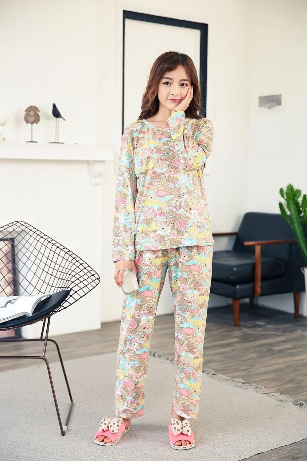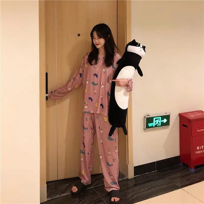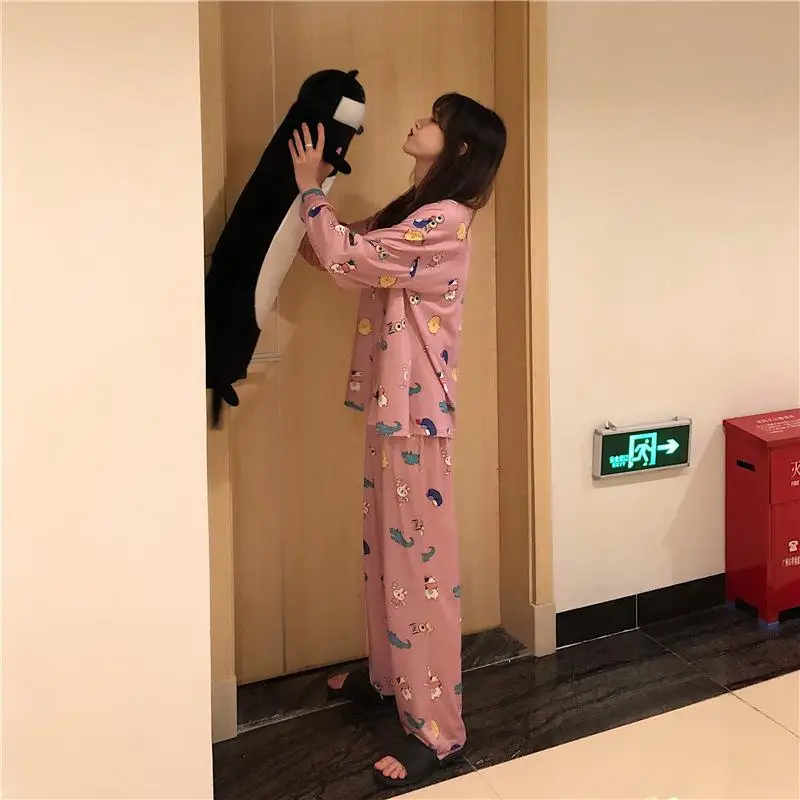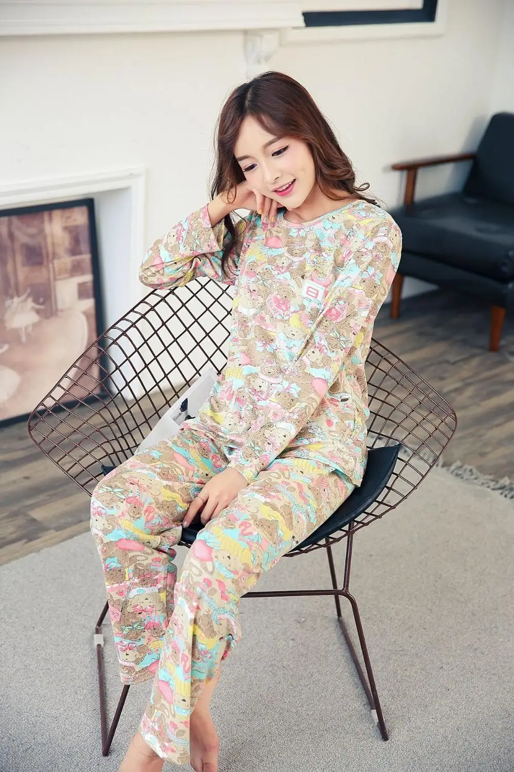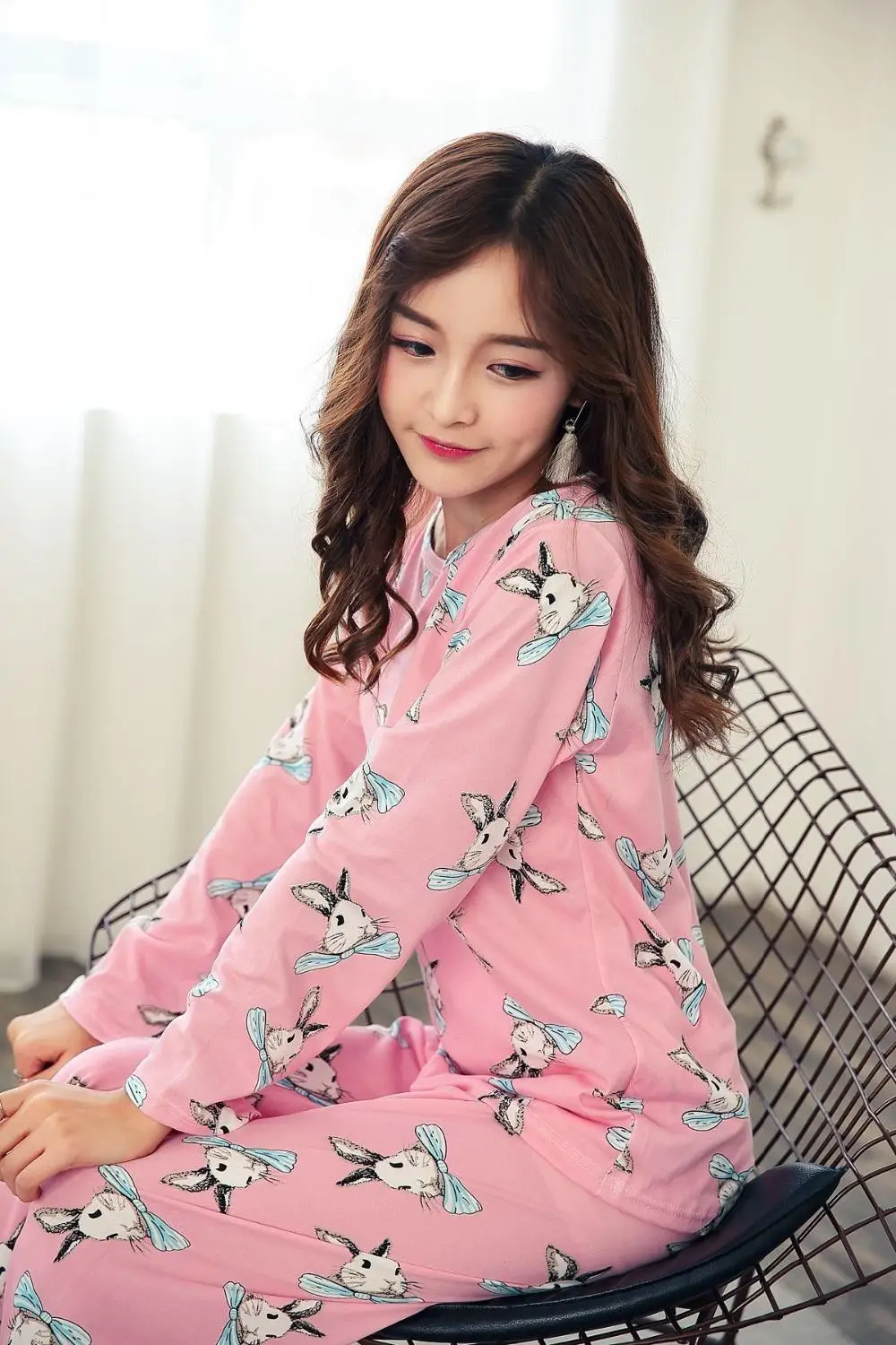 Весенне-осенняя новая Пижама с мультяшным принтом, женский милый ко...
