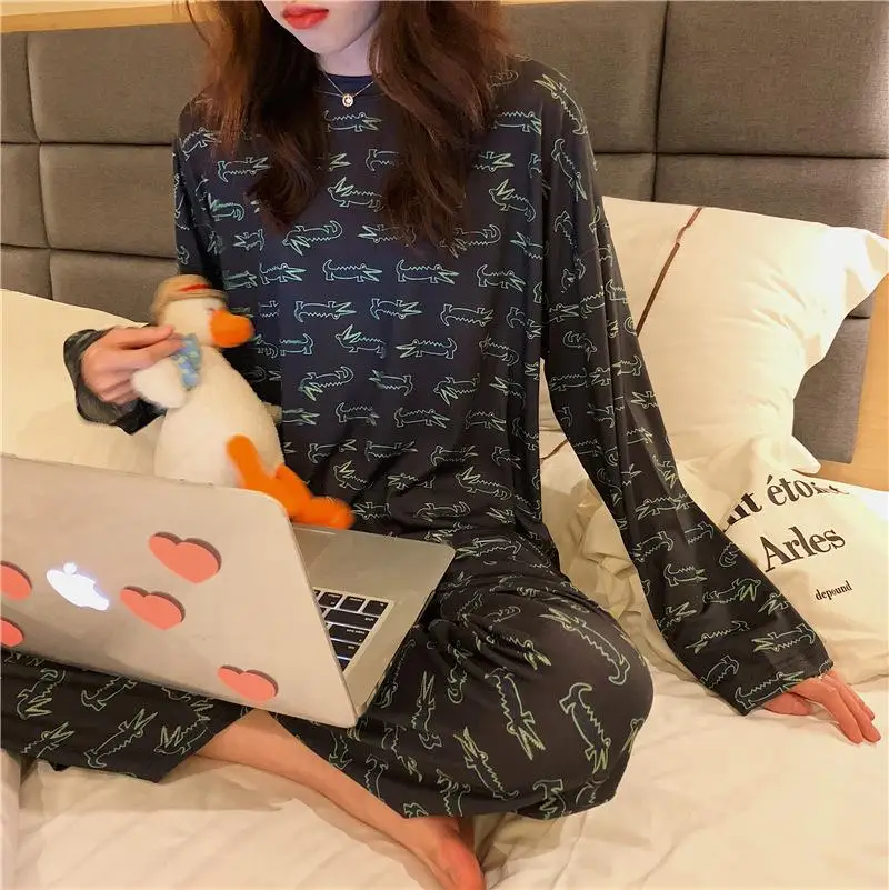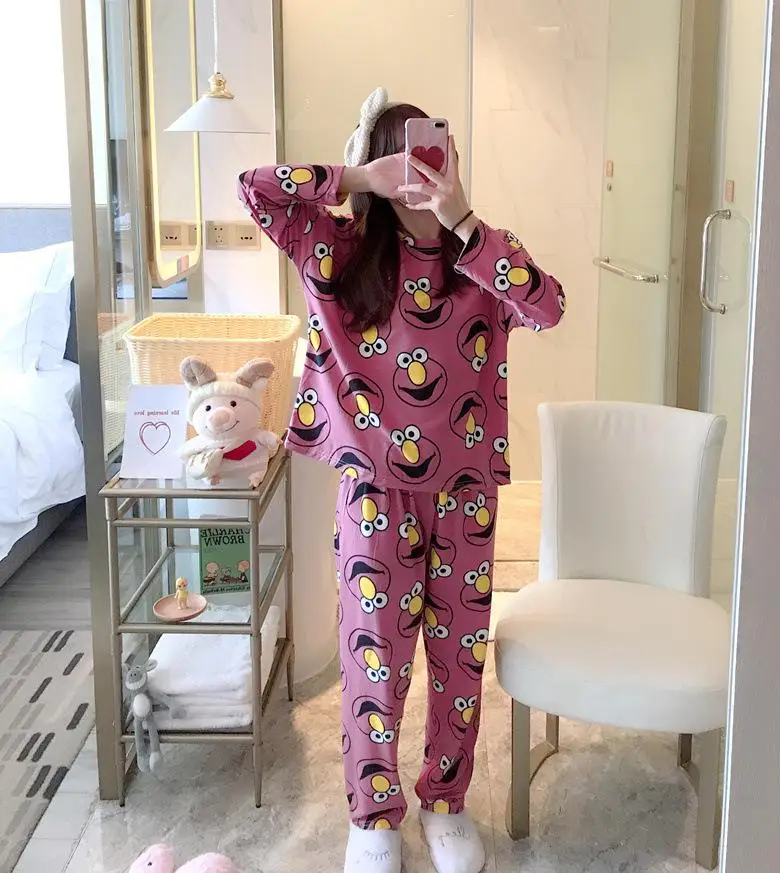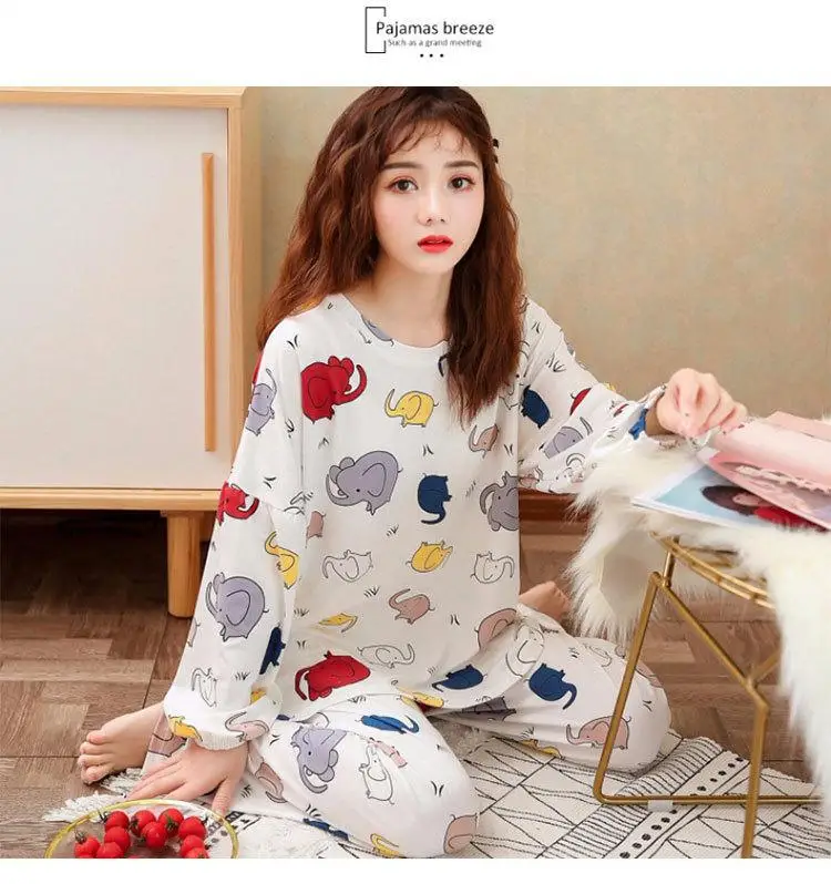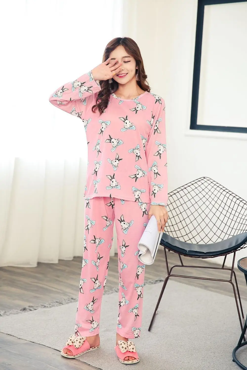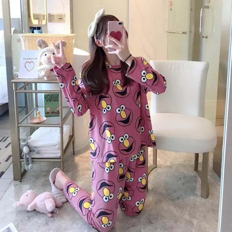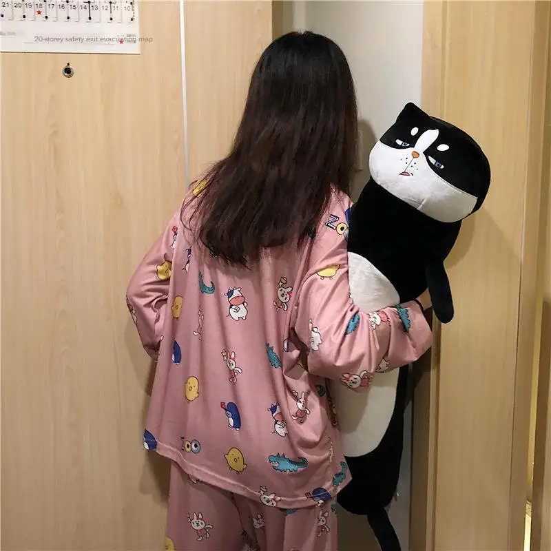 Весенне-осенняя новая Пижама с мультяшным принтом, женский милый ко...