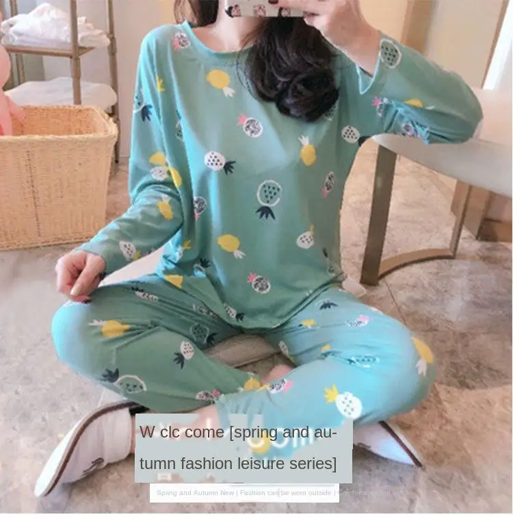Осенне-зимний женский пижамный комплект из 2 предметов из 2021 хлоп...