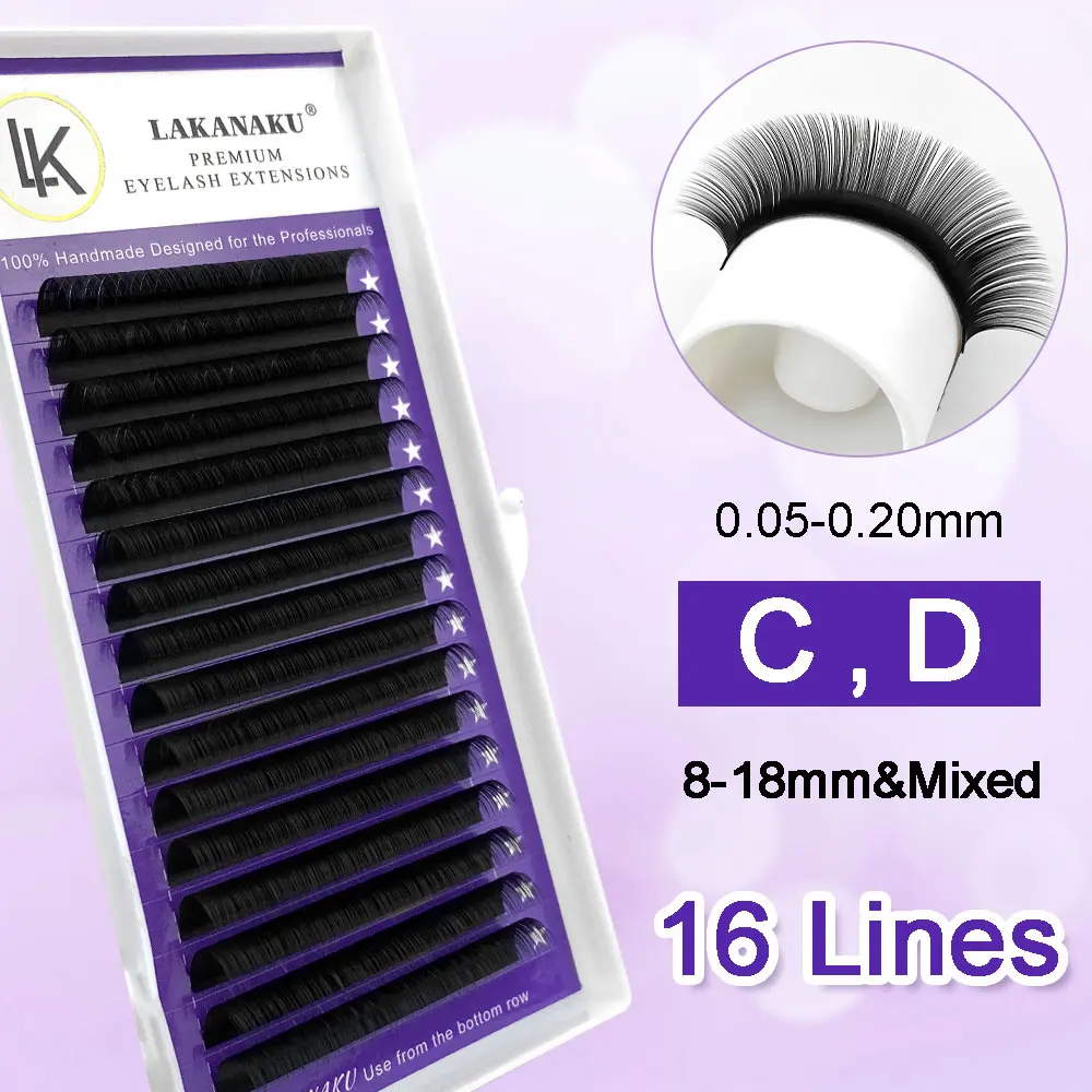 LAKANAKU индивидуальные классические ресницы мягкие 16 рядов 0,05-0...
