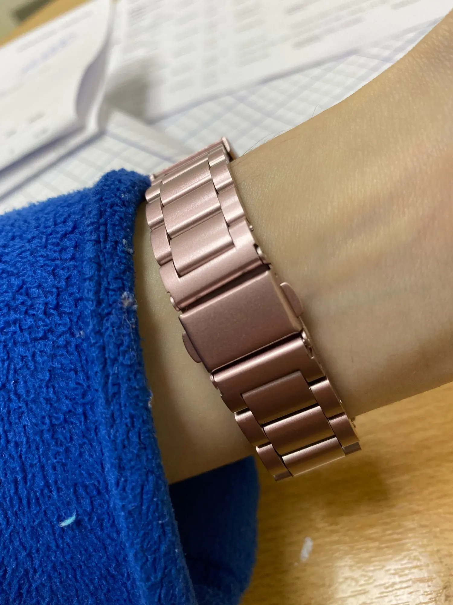 Ремешок очень хороший, прочный, хорошего качества и выглядит элегантно. Мне пришлось уменьшить его, потому что он был слишком большим для моего запястья, но так как он поставляется с вентилятором и аксессуарами, проблем нет.