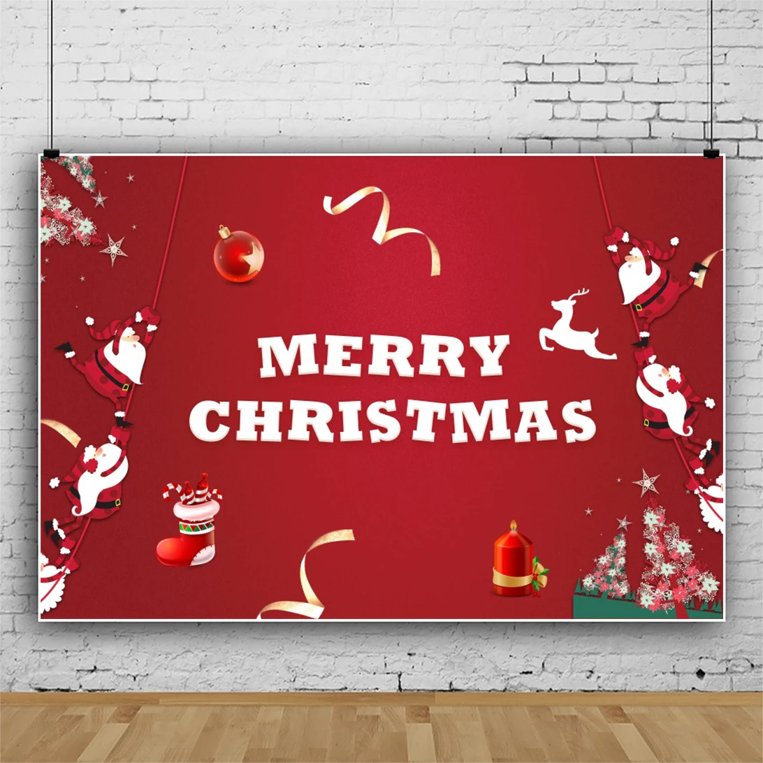 Рождественский красный Фотофон с Санта Клаусом на санях декор для рождественской вечеринки реквизит для новогодней фотостудии фотобудка