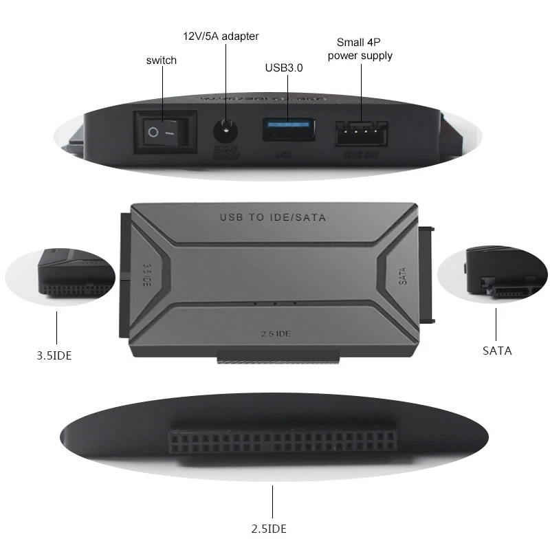 4. Превосходная передача данных 5 Гбит/с: с интерфейсом USB 3,0, скорость передачи данных до 5 Гбит/с. Конвертер IDE также обратно совместим с USB 2,0/1,1.