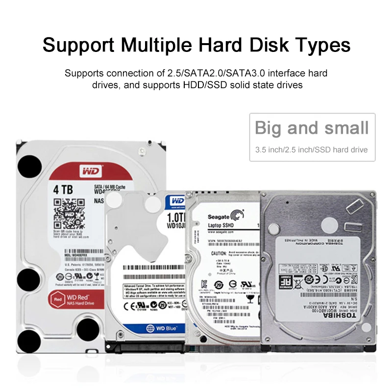 5. Поддержка огромной емкости: поддерживаемая емкость дисков до 5 ТБ. Светодиодный индикатор адаптера usb на sata sdd может контролировать рабочее состояние. Подключи и работай, прост в использовании.