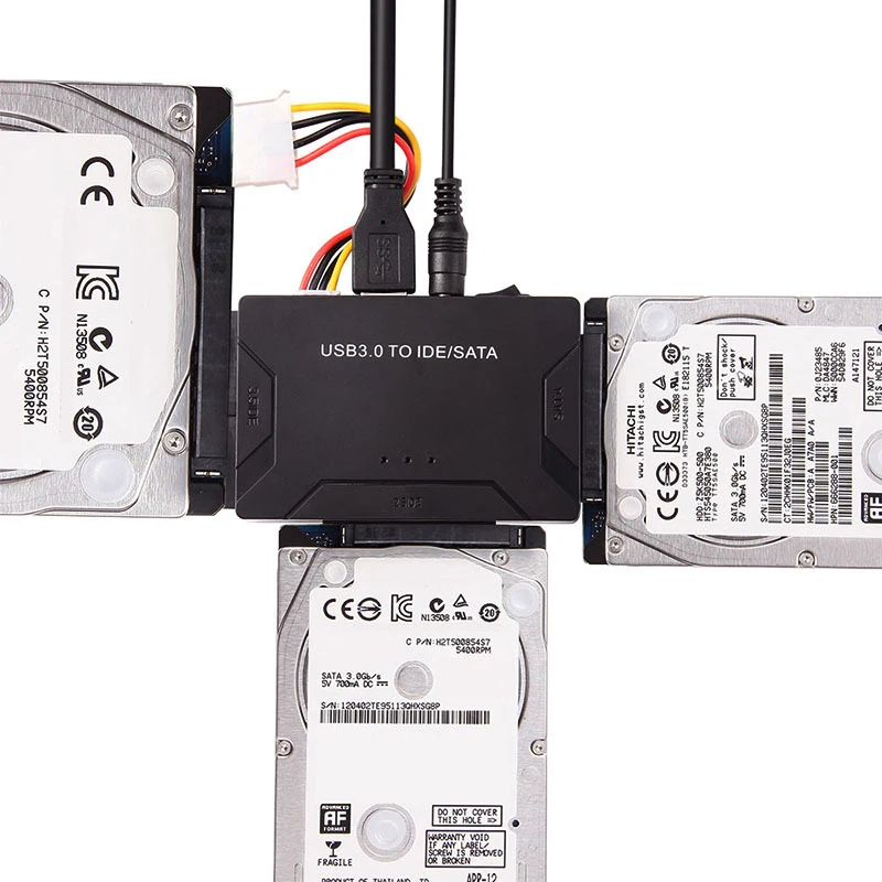 3. Доступ к 3 дискам одновременно: Этот адаптер usb sata позволяет получить доступ ко всем трем дискам HDD одновременно или передавать файлы среди 3 дисков. Поддерживает 2,5 "/3,5" SATA HDD и SSD; 2,5 "/3,5" IDE HDD.