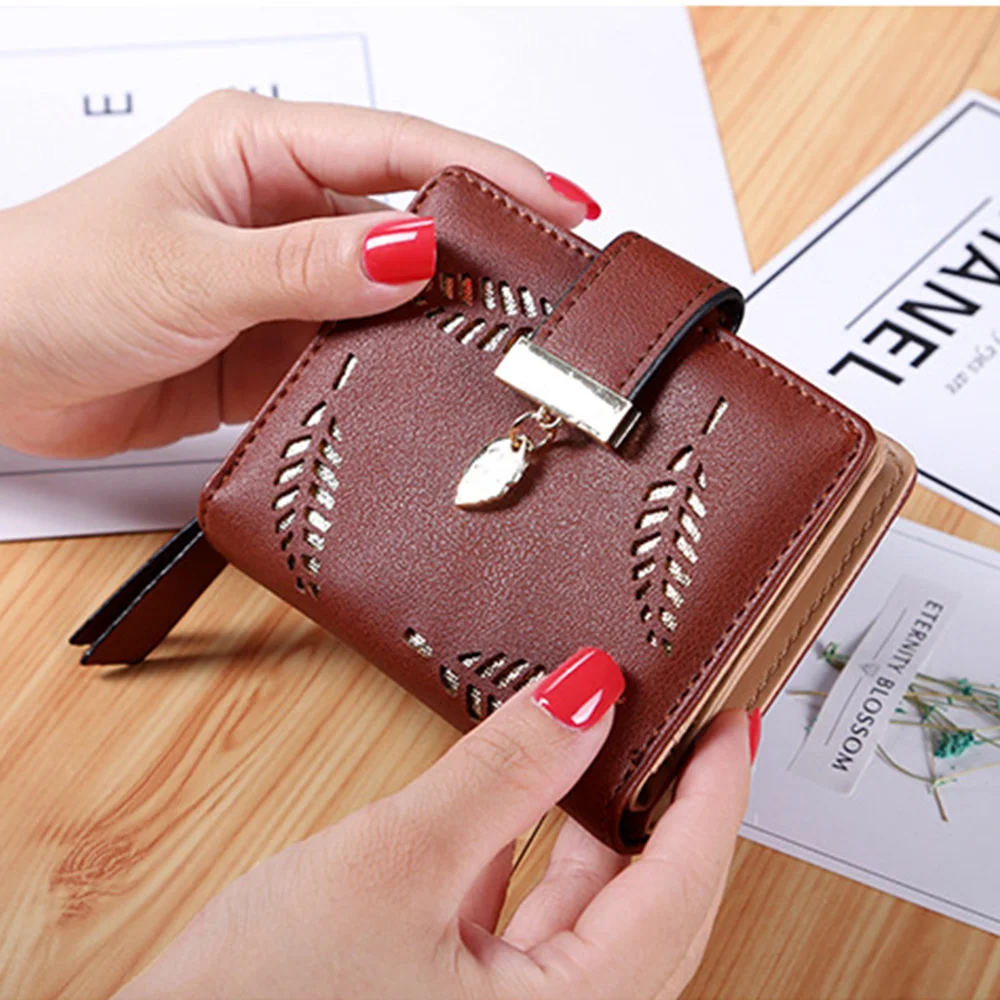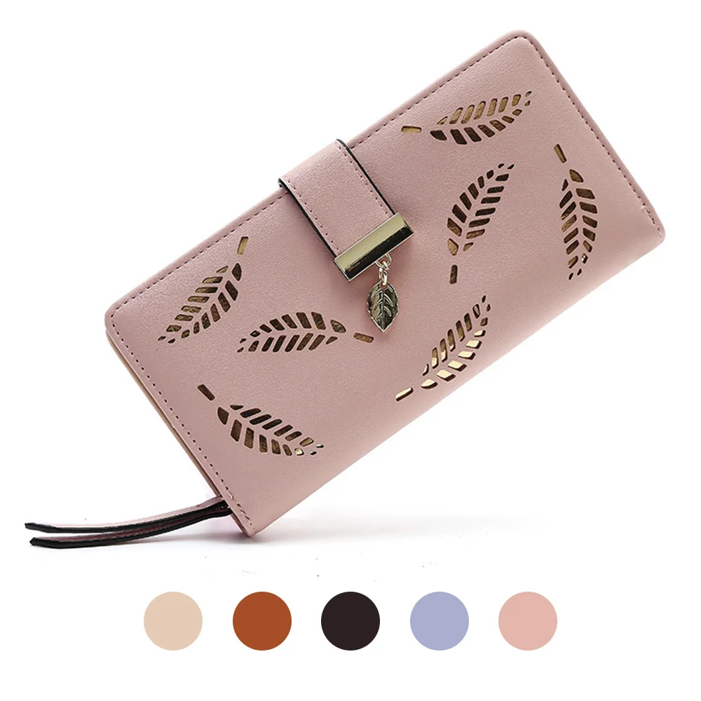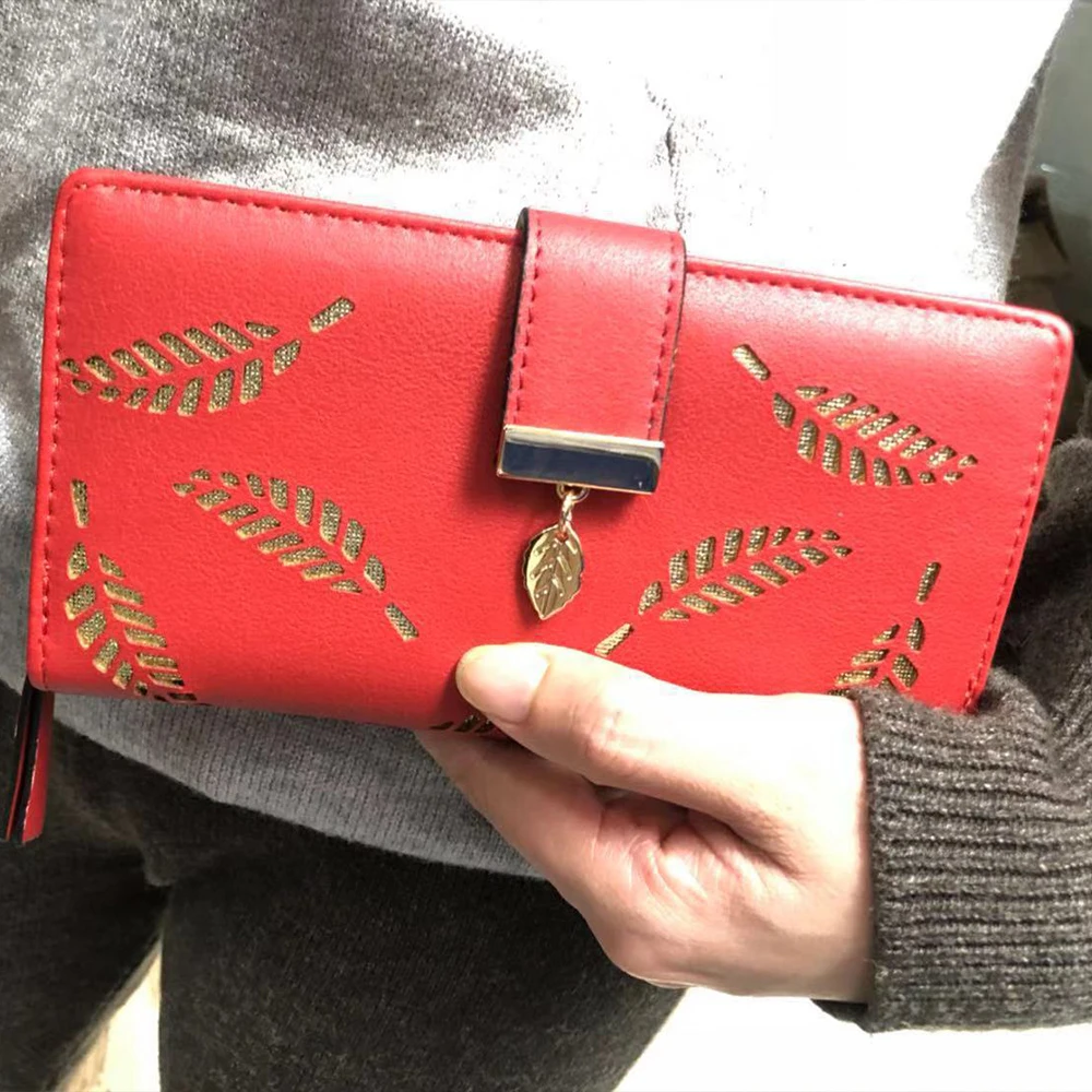 Женский кошелек из искусственной кожи, Длинный кошелек с золотыми листьями, сумка для женщин, кошелек для монет, держатель для карт, клатч